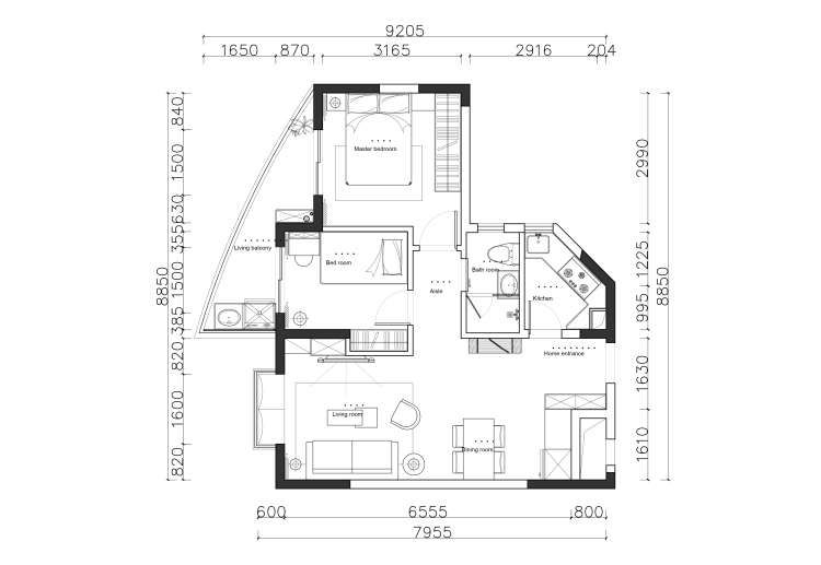 存在卫生死角,客厅基本以活动家具为主,导致储物空间不够,以及空间显得零散。