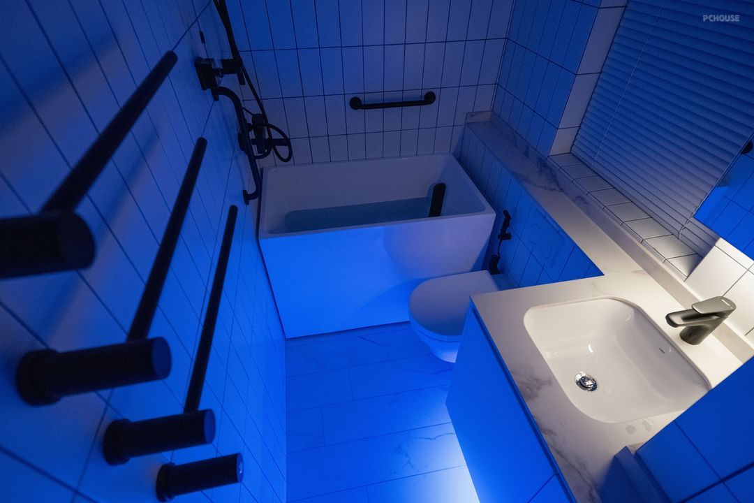 4、灯光系统设计,全屋做了RGB灯光系统,展示不同场景氛围,抽屉和柜内都有感应灯光设计,提升体