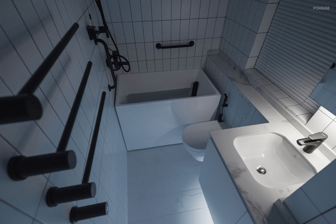• 卫生间墙面用小面包砖提升空间美感。对卫生间功能进行详细的规划,保证后期使用的便捷性。