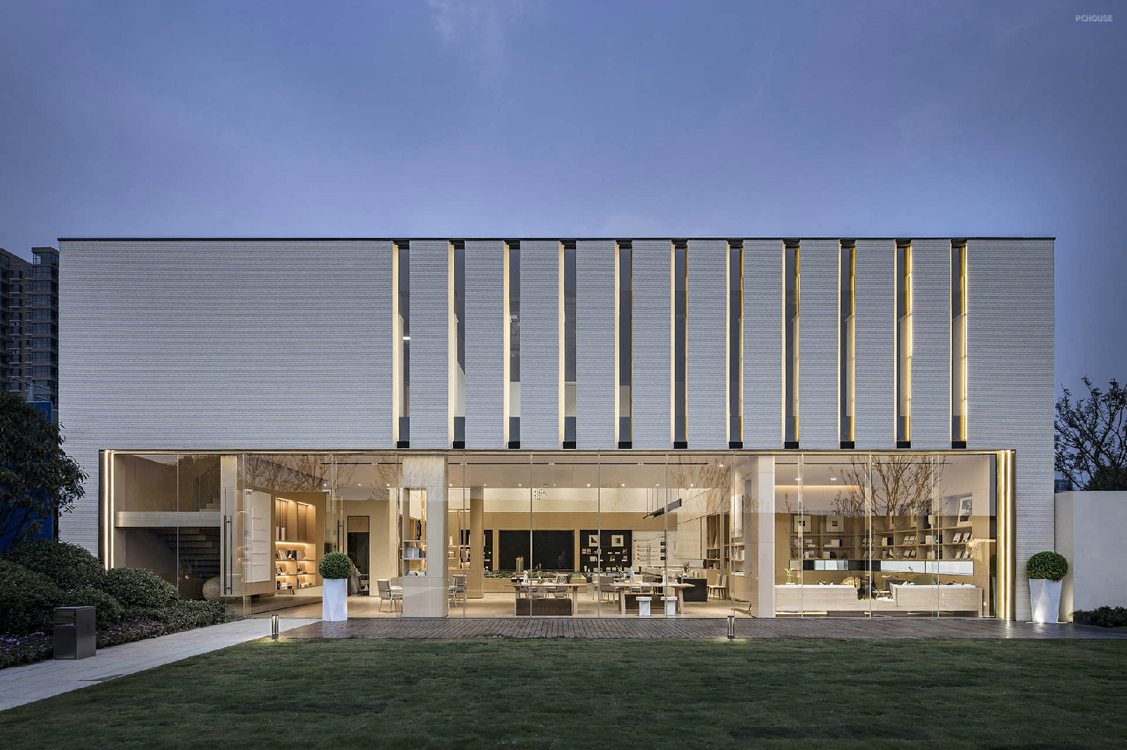 这是一个城市商业建筑,MOD墨设通过对建筑外立面设计、室内设计、软装陈设设计及实施,整体打造了一个具备社会功能性的场所,同时满足前期售楼的使用功能。