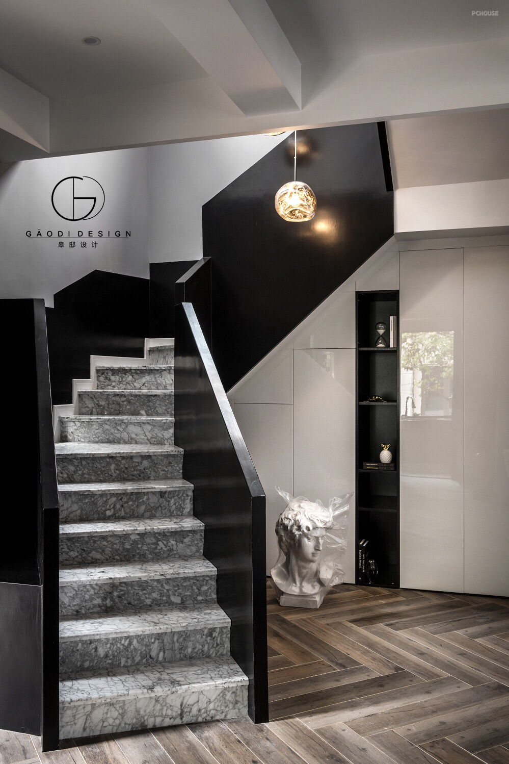 45°倾斜楼梯,让这个240平的别墅更添艺术气质
