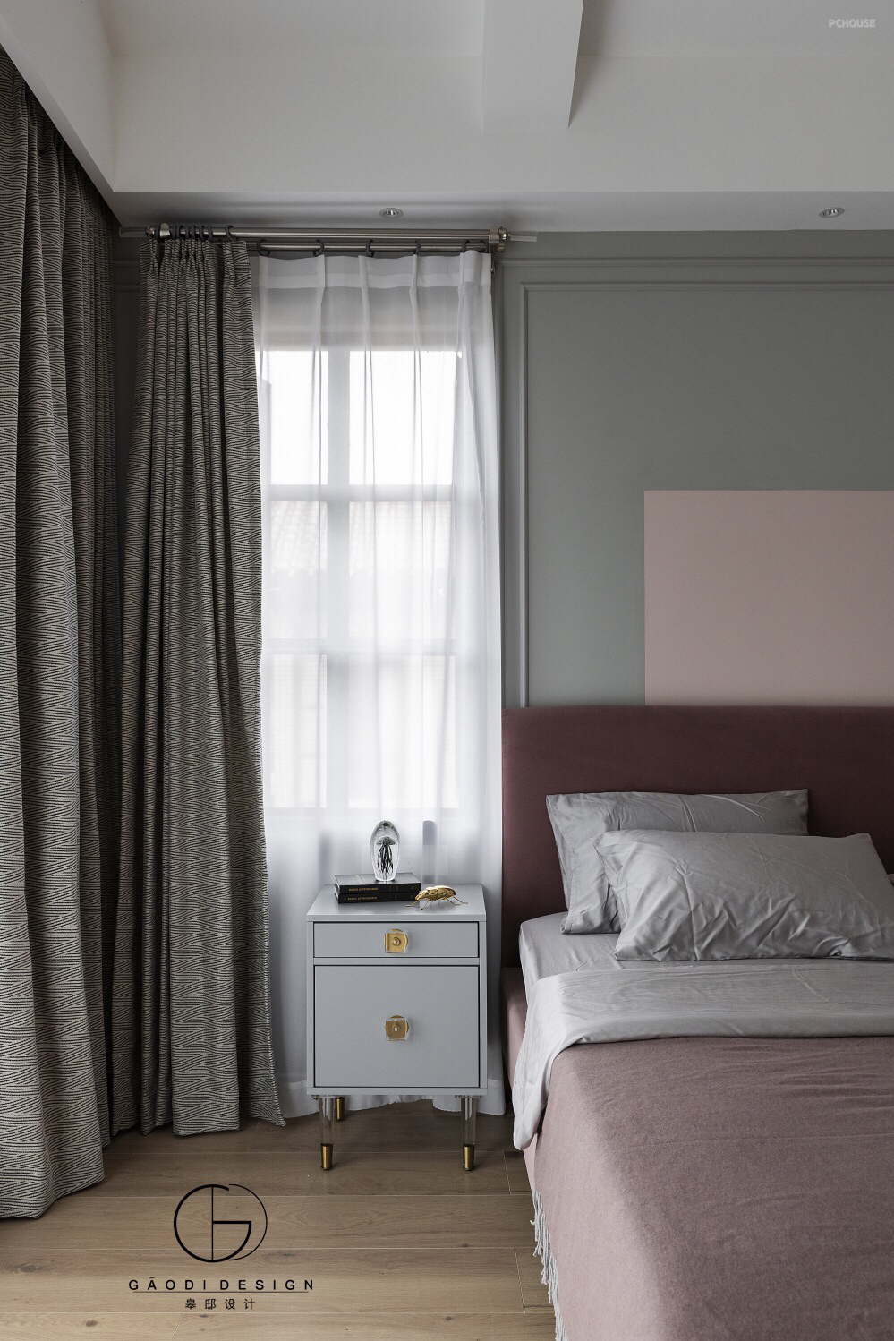 床头柜都是一个粉色,一个灰色~满满都是细节