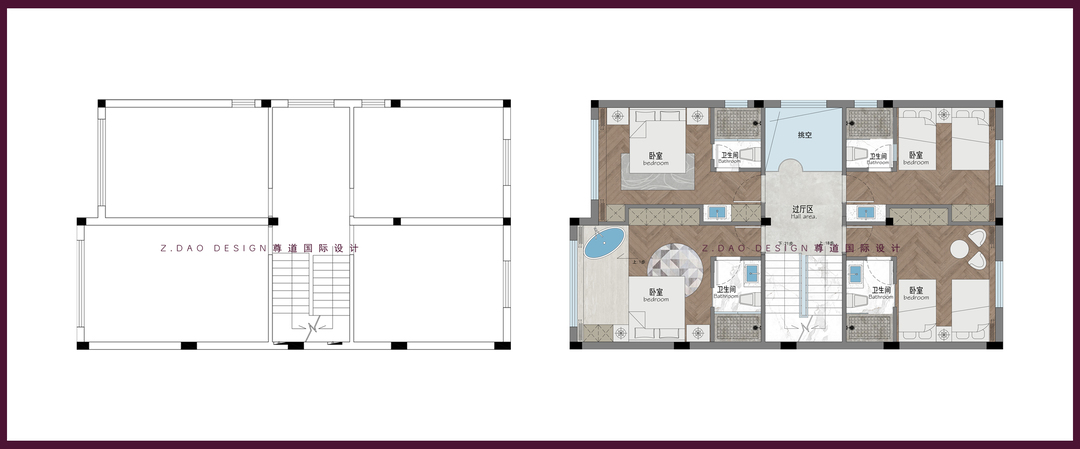 ▲二层原始户型图vs平面布局图