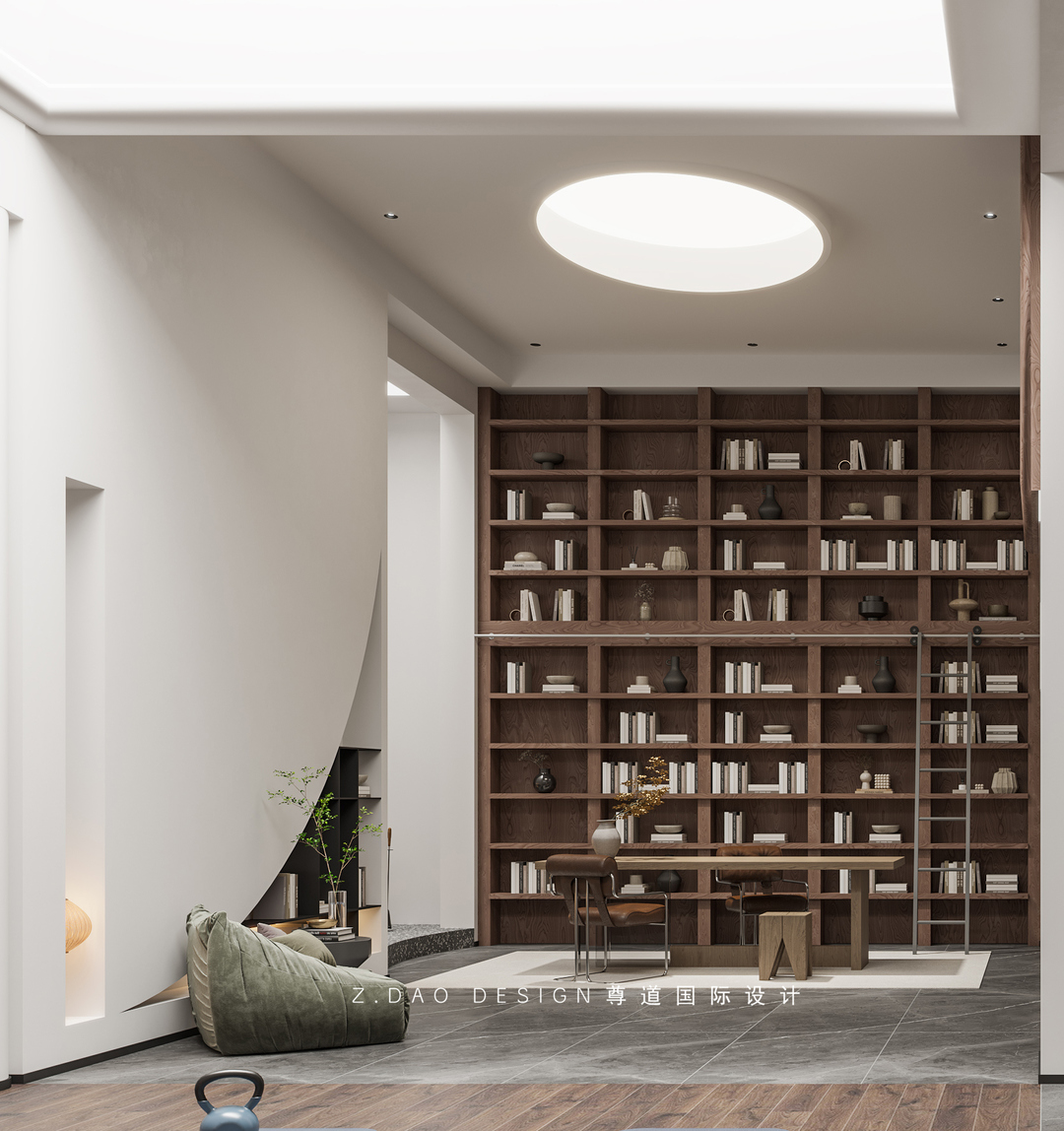 合肥『云谷名庭』500㎡现代侘寂风别墅,挑空阅读区&天井围炉,光影流转,物造妙境。