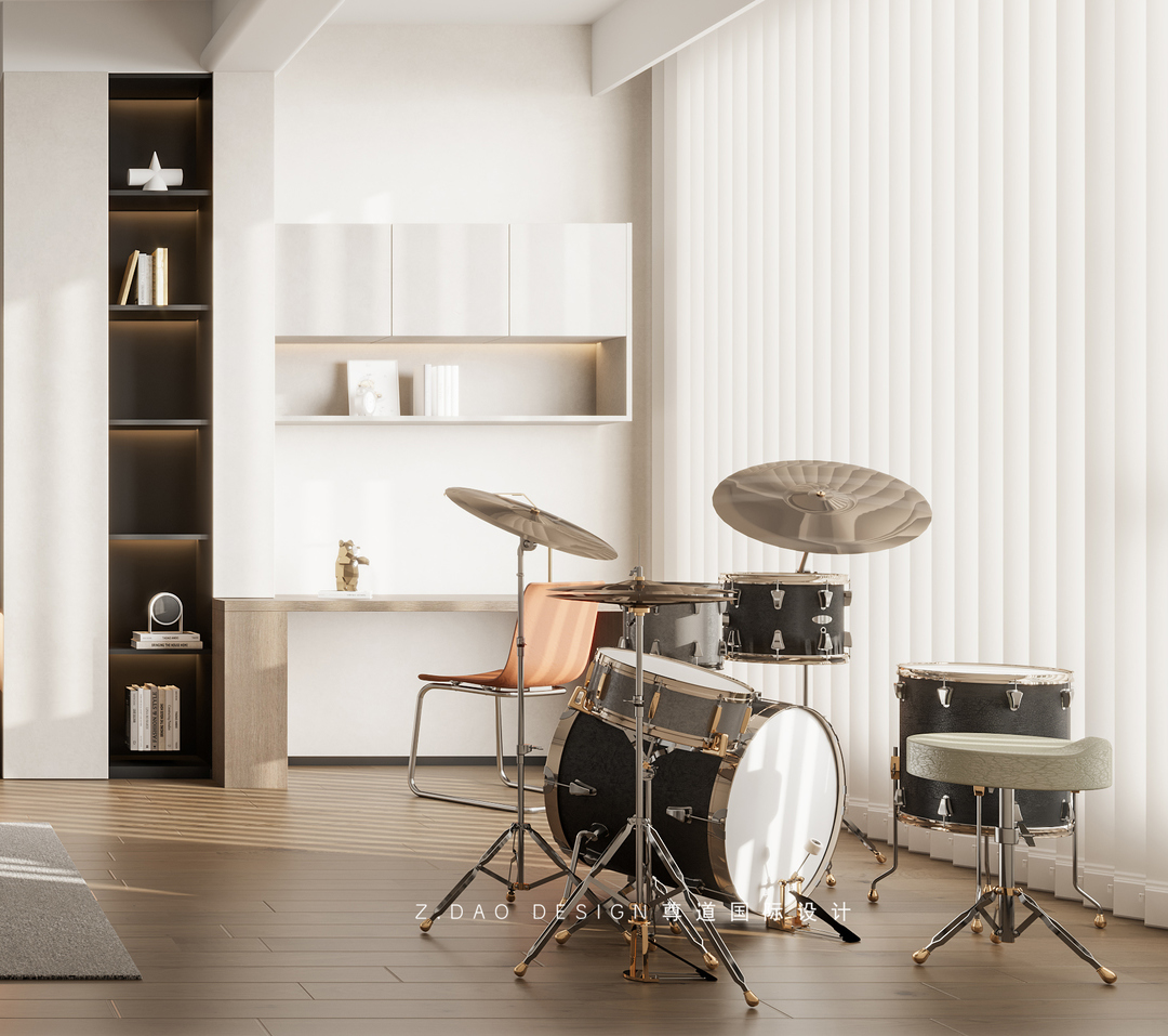 架子鼓的结合让空间氛围多了乐趣和一些摇滚范。