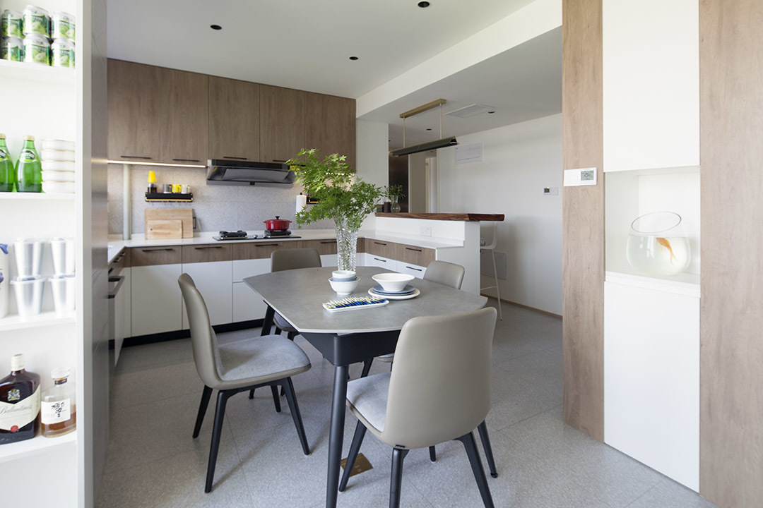 改变动线后,卧室这样的私密空间与公区界限分明,即便客人要去卫生间,也看不到卧室内部;而客人坐在客厅或餐厅时,也看不到卧室通往卫生间的通道。
