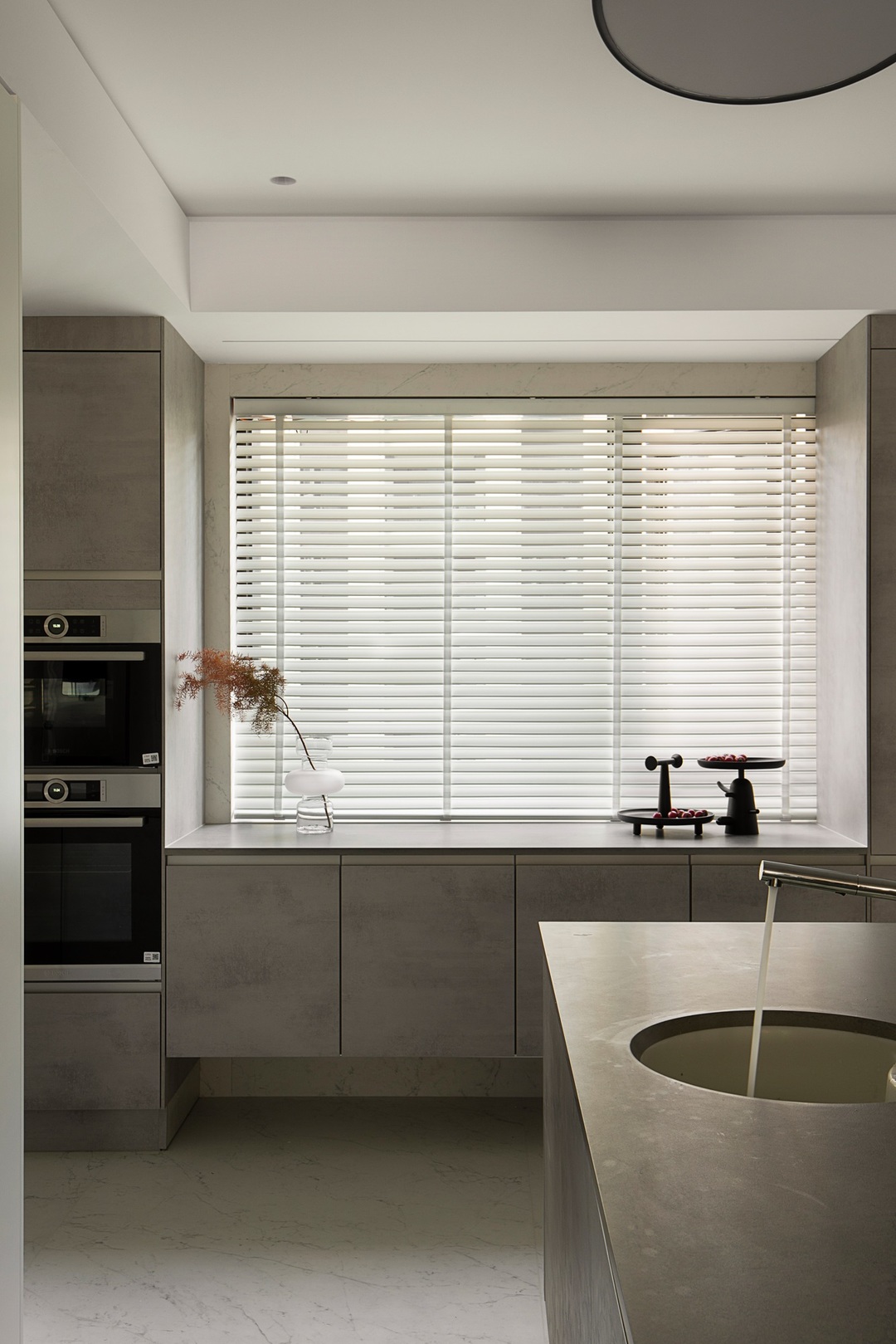 经由差异化的材质与肌理,铺陈温馨惬意的餐厨空间,通过细腻的线条与细节处理塑造精致而有趣的氛围。