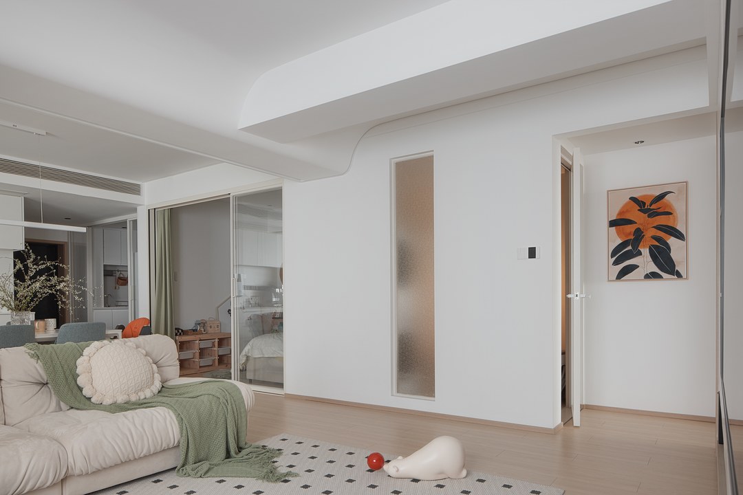 在孩子幼小的成长阶段,需要足够的活动空间,玩耍在家人的视线之内,这些种种考虑,让我对这个异形空间进行打破重组有了一些新的想法。