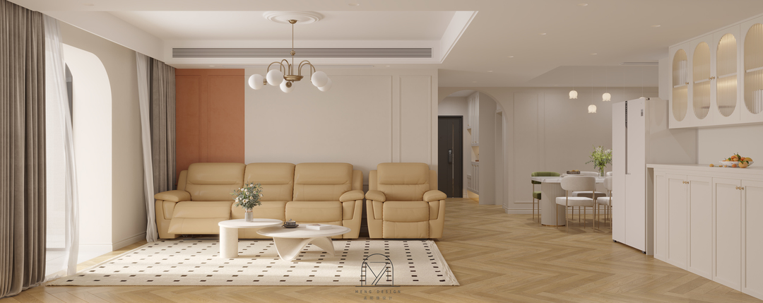 现代风格的基础上加入了法式的元素,整体感觉没有传统法式的厚重感,给人一种清新舒适的感觉。