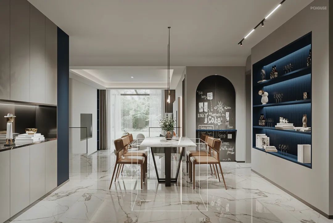 沿墙设置的墙柜系统采用开放封闭相结合的设计,