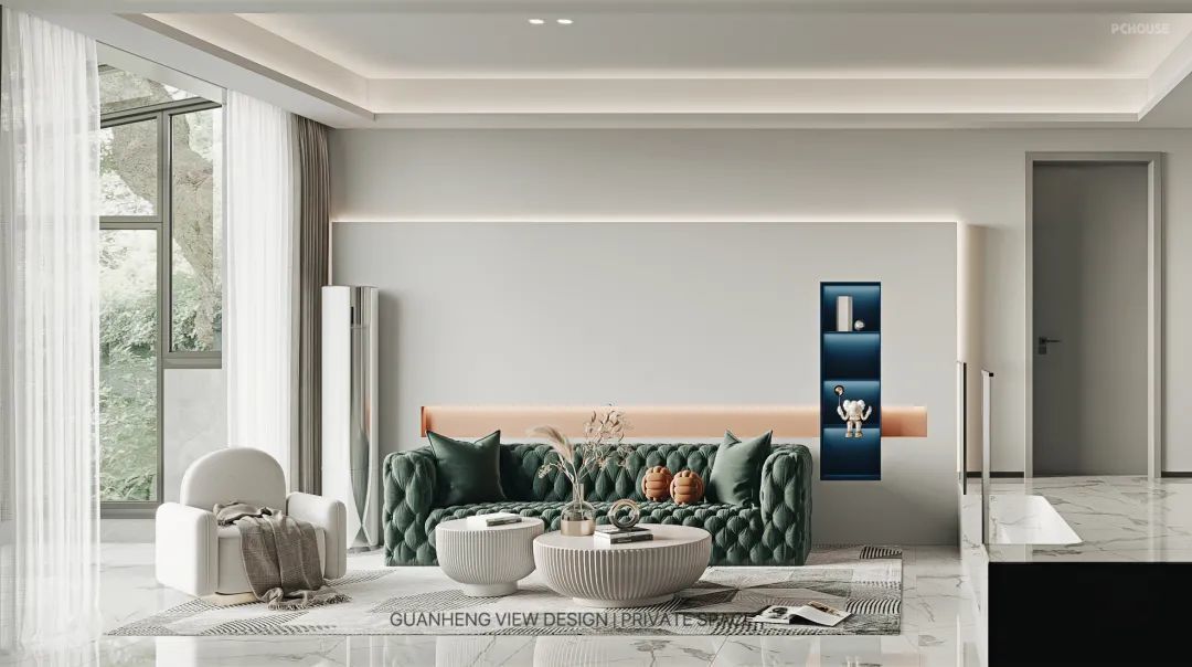 微微曲边的顶部设计与电视背景的弧面相呼应,