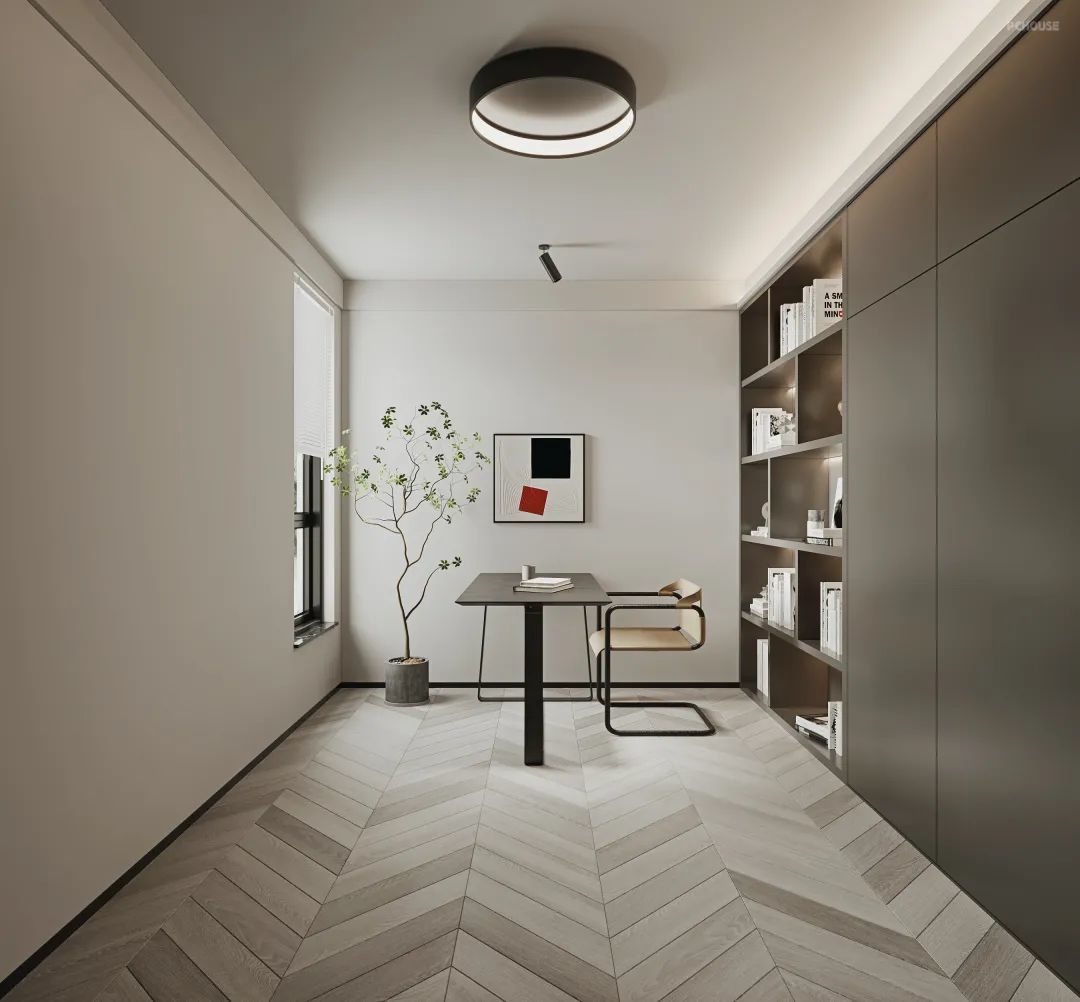 4、削薄书房与儿童房之间内墙,沿墙两侧增设大量储物柜,满足业主的收纳需求。