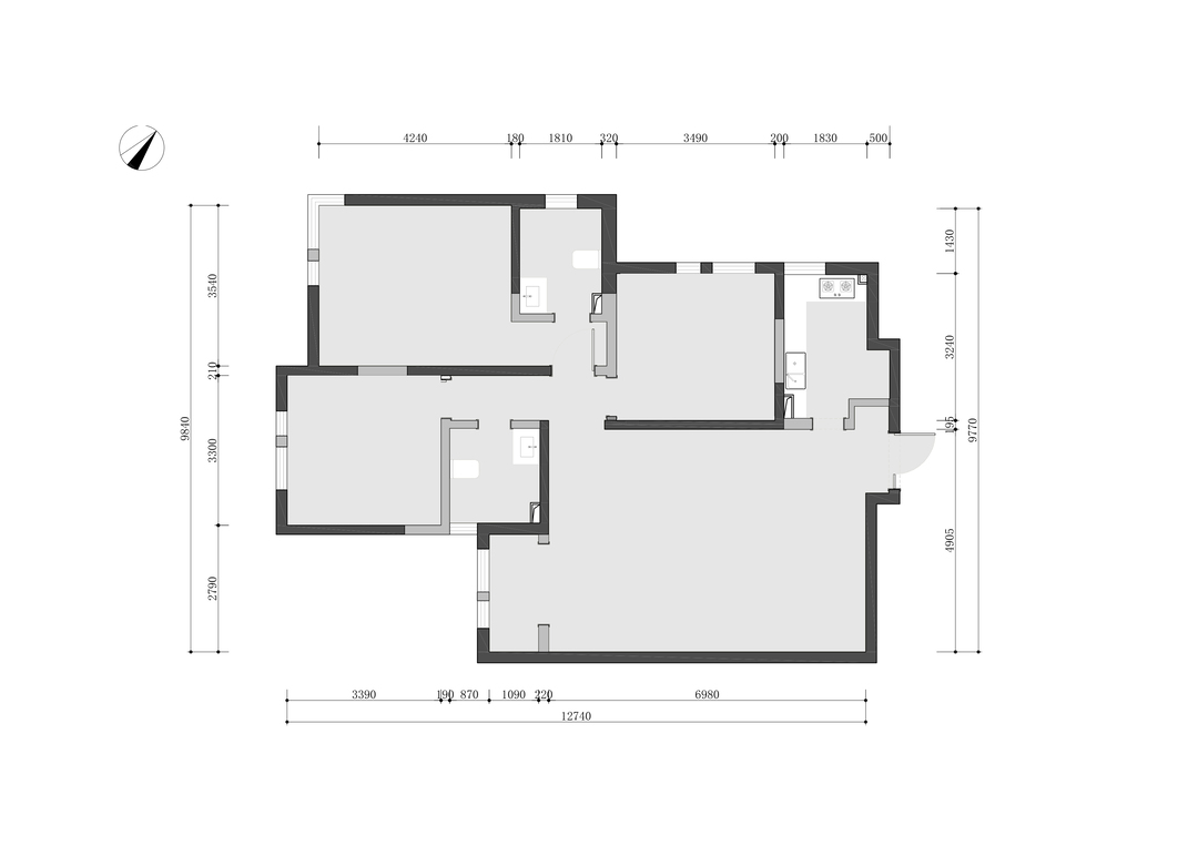 其中客厅与阳台之间有一道隔断,导致阳台的利用率很低。此外,由于是婚房,三个卧室有些多余,而且原始空间的收纳空间也比较少。另外,厨房与玄关之间有一个无法使用的L形墙体。