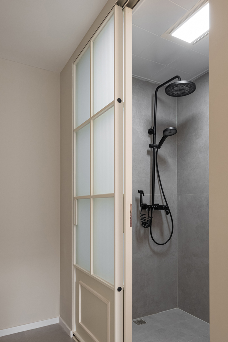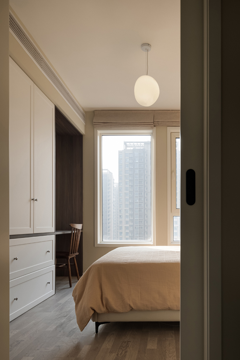 我们还缩小了浴洗空间,为次卧腾出了更多的收纳空间。在整个设计中,我们注重保持视线的通透性,使得每一个角度都恰到好处,就像是精心构图的瞬间般美不胜收。