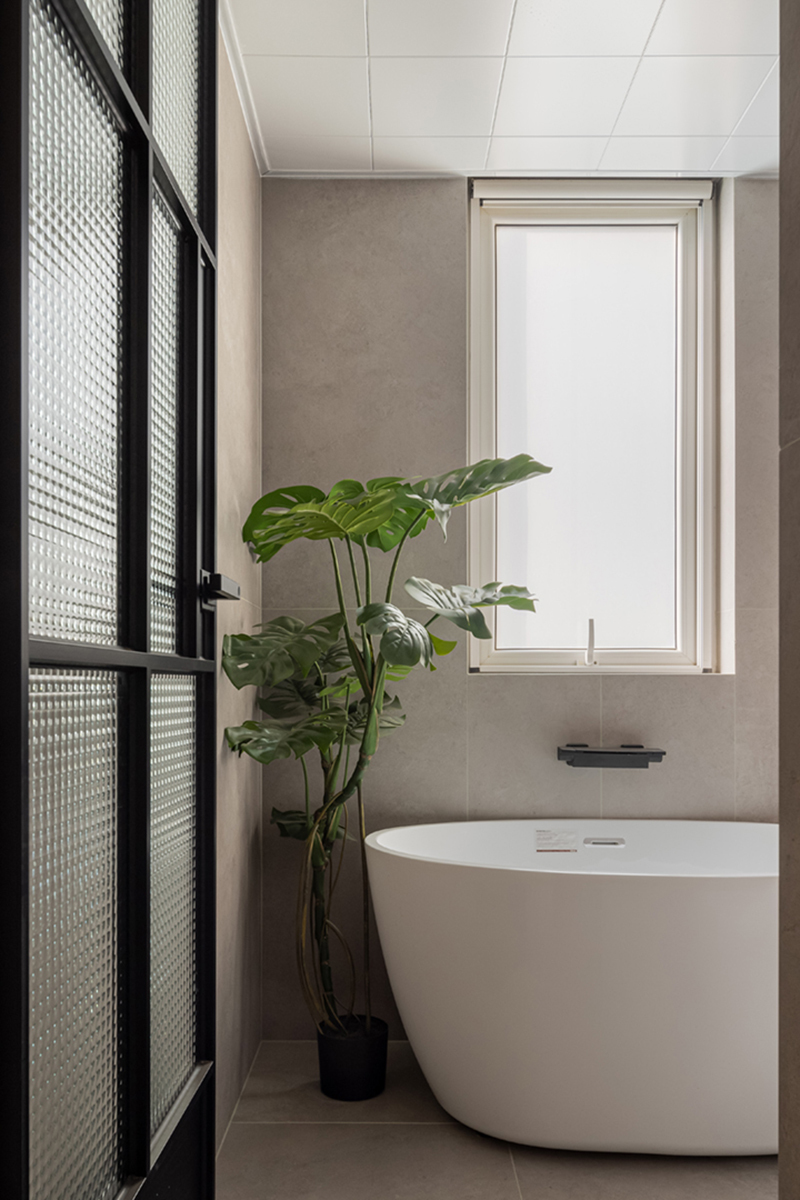 考虑到了光线的利用。利用窗户的位置进行光线引导,我们让自然光进入主卫,使其更加明亮和宜人。