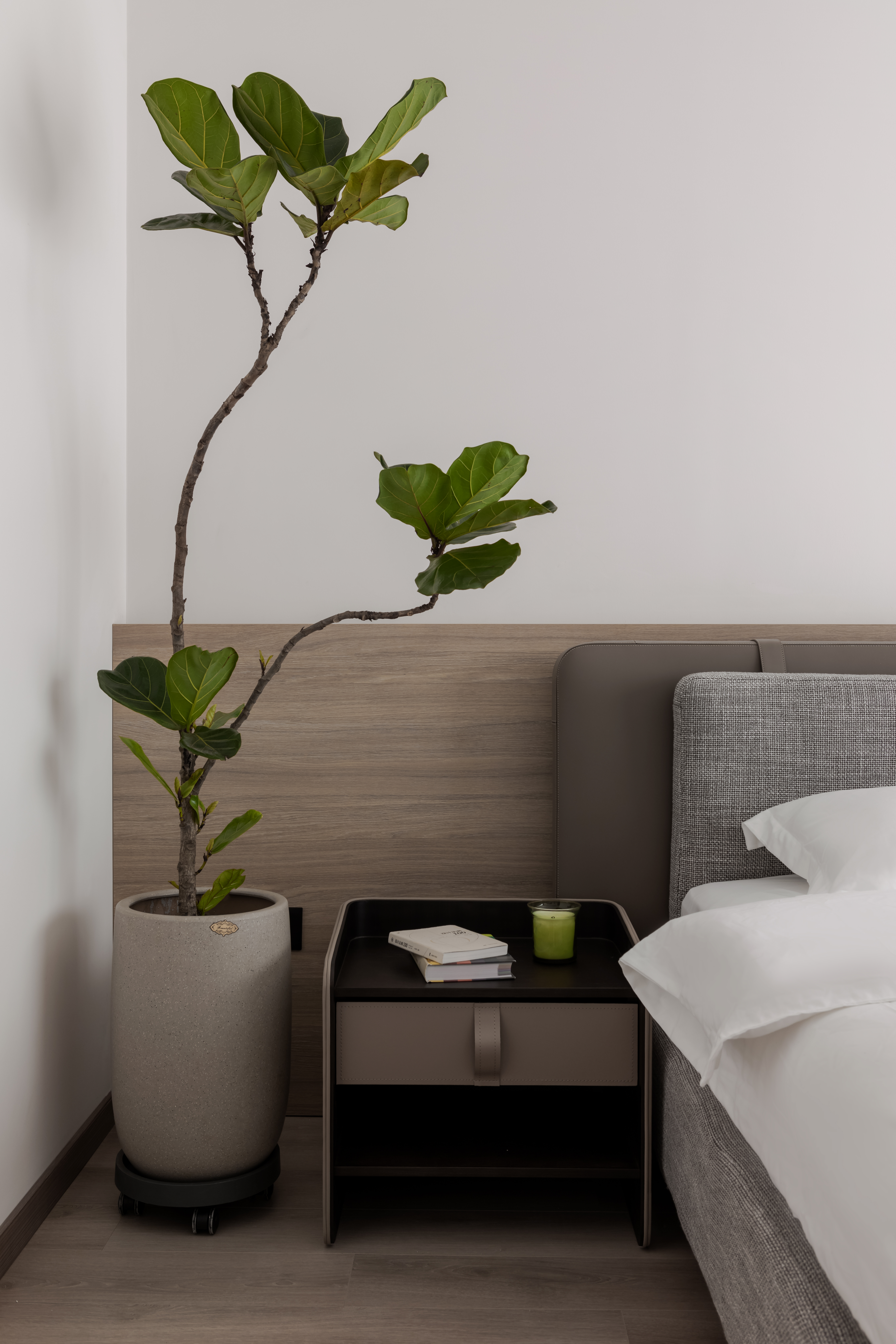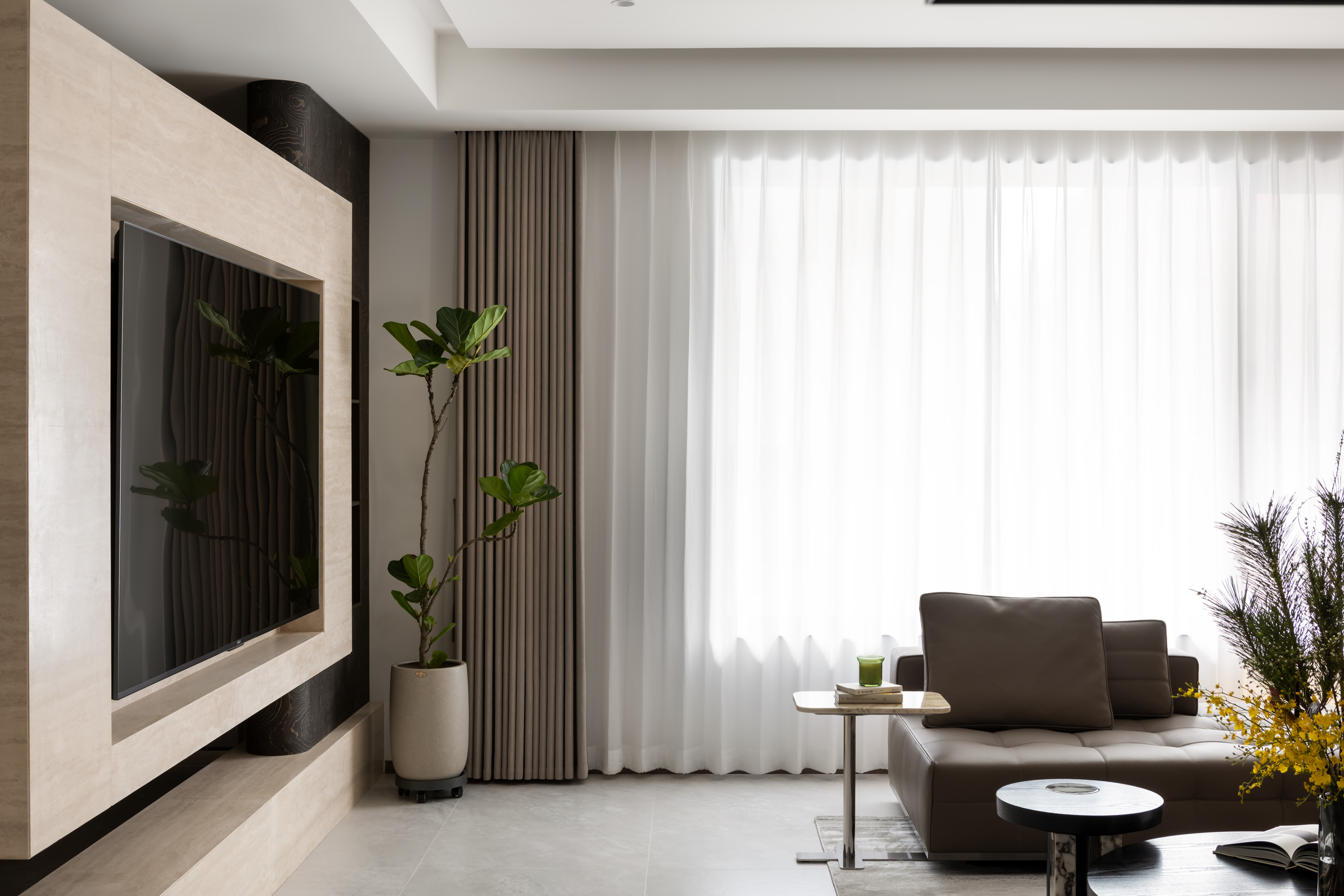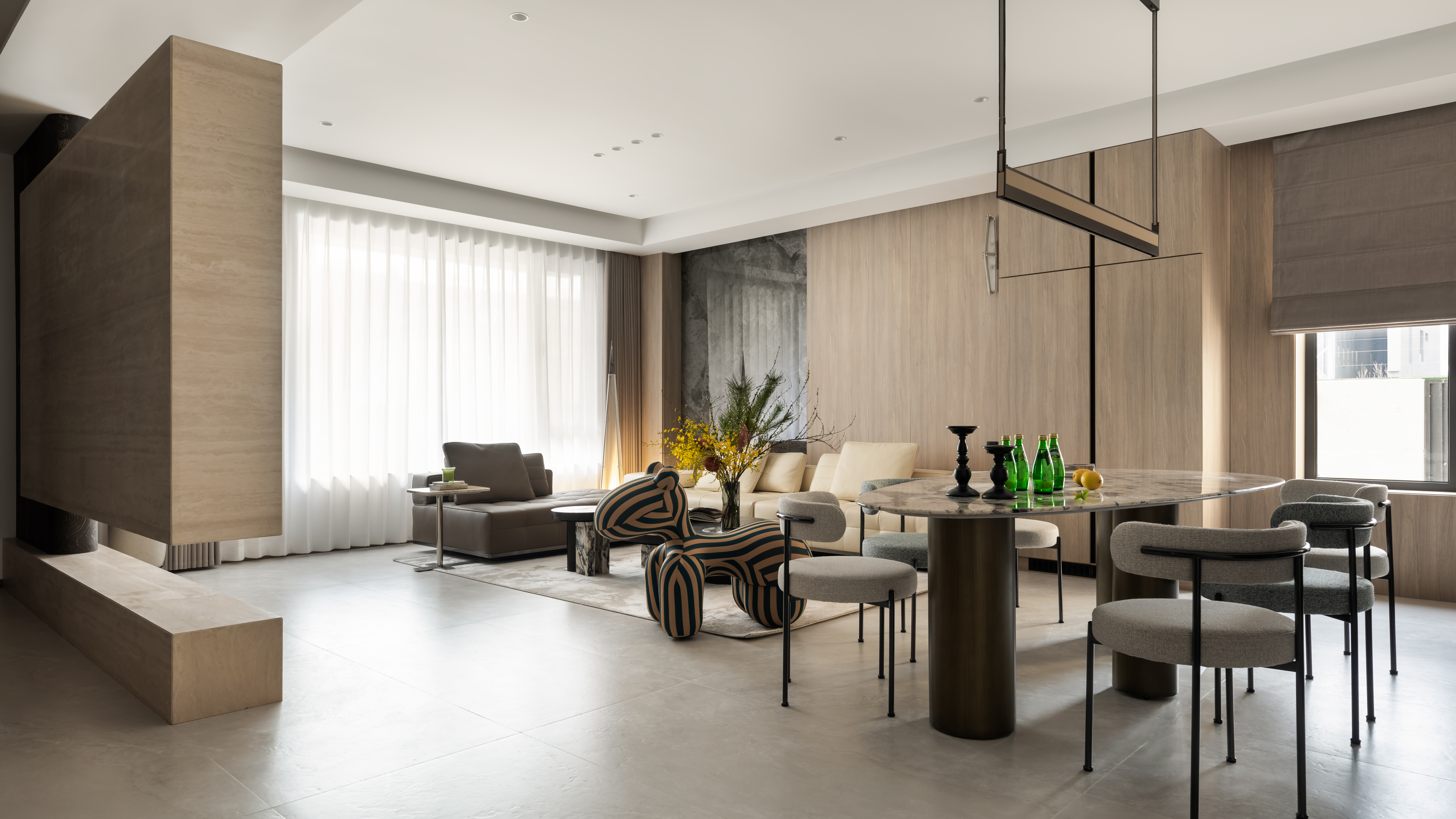 设计师汲取在地山野风光,以季节、空间和光影,搭配室内繁花与绿意,用简约设计手法进行了有层次的意境表达,营造出一个自然居家空间。