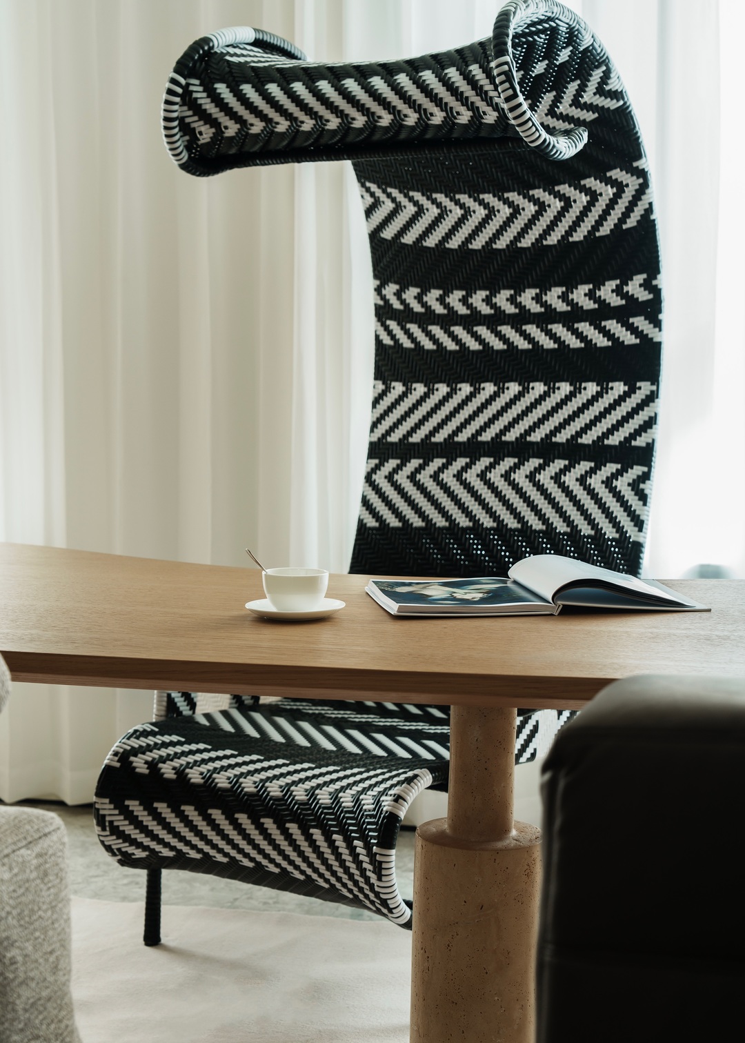 在抒情中将直线向上,从诗学理论中出发,将情感投射于外物,渗透外物;陈设的不拘小节,与之交叠,把空间的生命力外射于物,内外兼蓄中如一股活力的源泉,将强烈的感情在空间中自由的流露;虚实相生,韵律翩然。