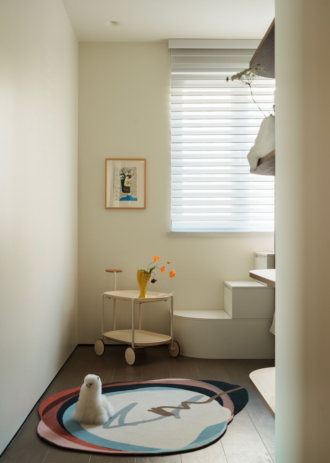 与原有概念的动态不同,我们更关注美的动态特征和对美的感知,它不仅是外在表象,更是一种对时间和空间的感知体验,色彩的强烈对比,曲与直的线条语言,感性与理性的情感对话在空间中流动;打破空间的疏离感,以活泼, 亲近的姿态促进家庭中的情感关系。