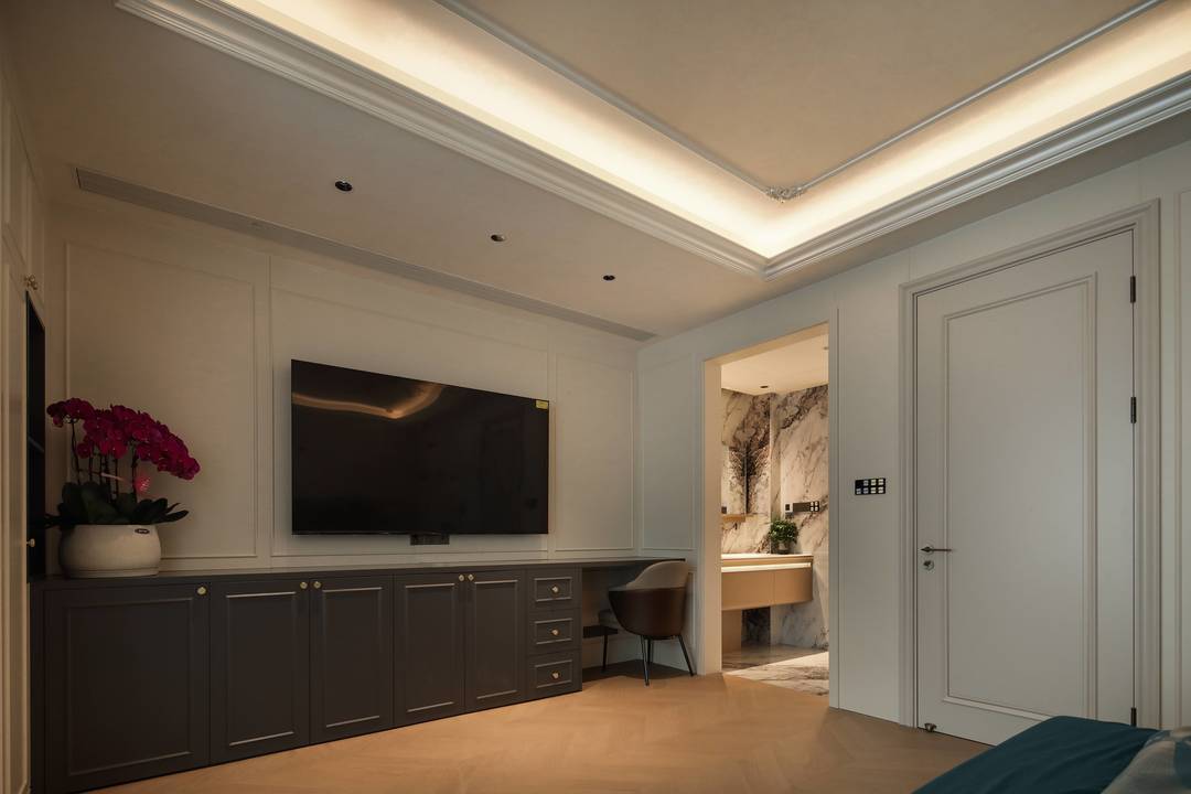 主卧延续空间的简洁雅致,以浅灰作为底色。