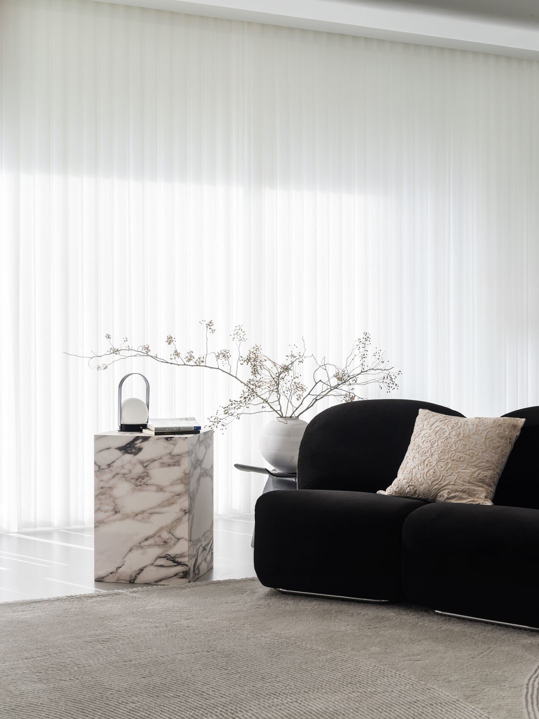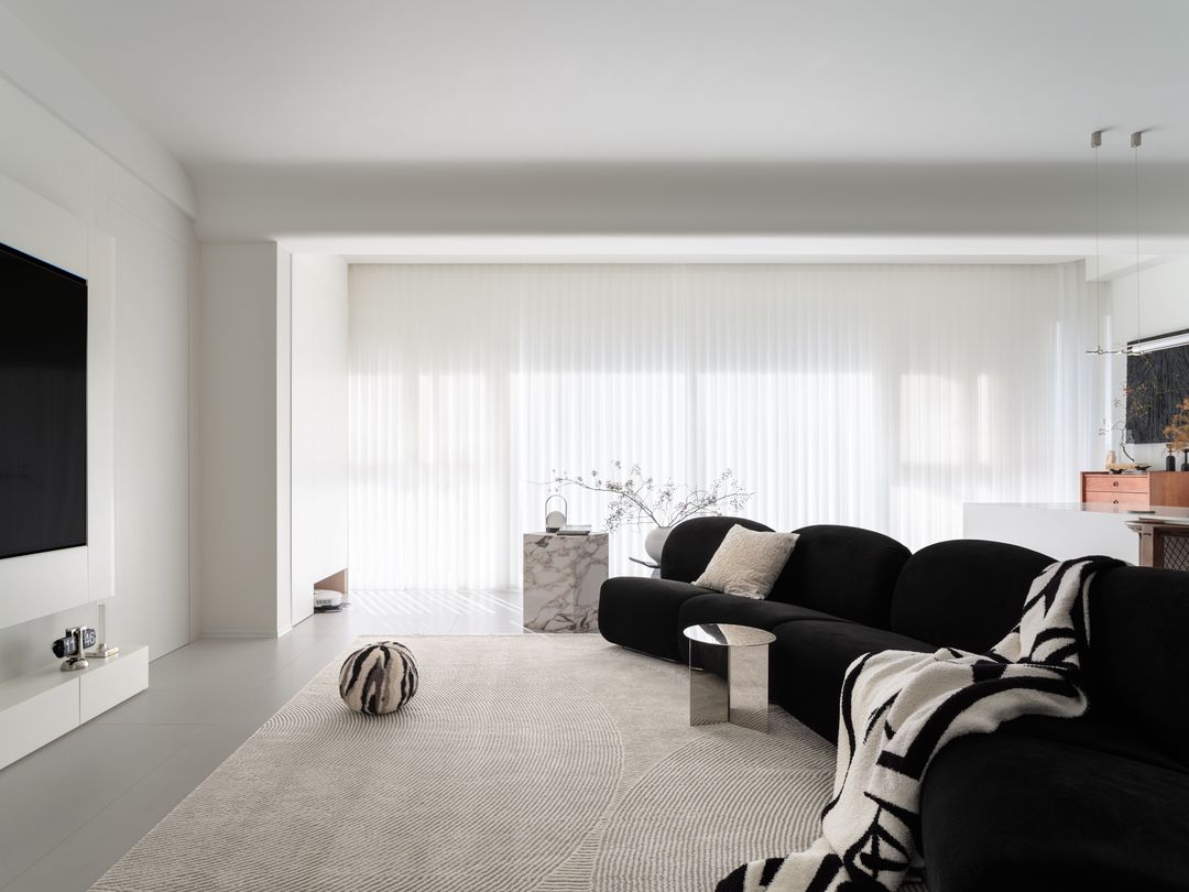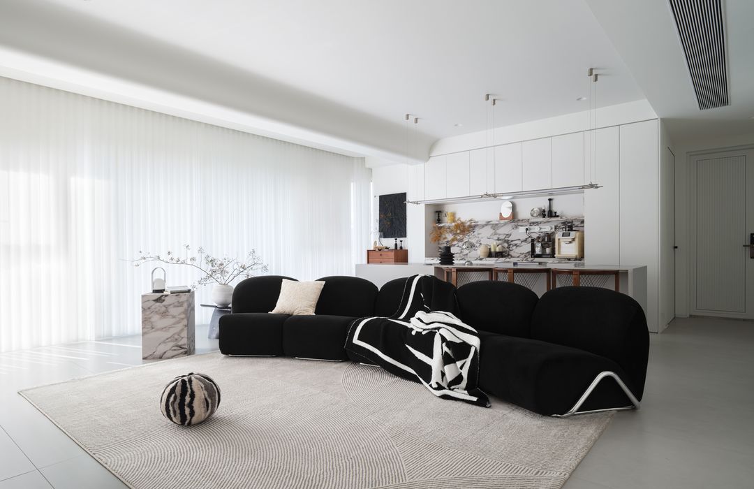 整体设计风格以干净简洁为主旨,客餐横厅空间采用圆弧曲线设计,使沙发电视墙呈现柔美自然的线条,为客厅注入温馨宜人的氛围。尤其值得一提的是3.2米的超大餐岛,它不仅是餐饮空间的核心,更是整体设计的亮点之一。