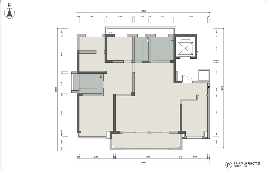 3.原本北面的小阳台墙体砸掉,使厨房、卫生间及小房间的面积向外扩展,提高了面积利用率。