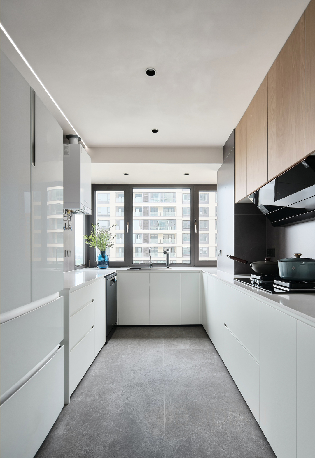 采用简洁的线条和无把手设计,使整个厨房看起来更加简洁大方。同时,橱柜的收纳功能也得到了充分发挥,各种功能区域划分合理,让厨房用具和食材都能找到合适的存放位置。