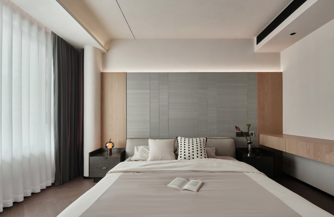 简约的床头背景和家具使主卧空间看起来干净整洁,没有多余复杂元素,展现出高品质的生活态度。