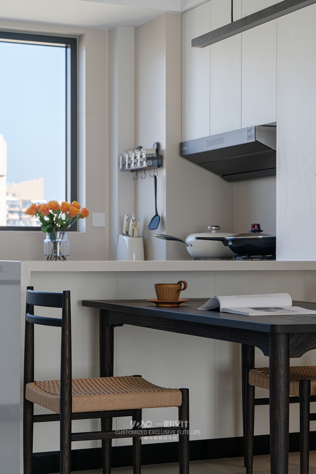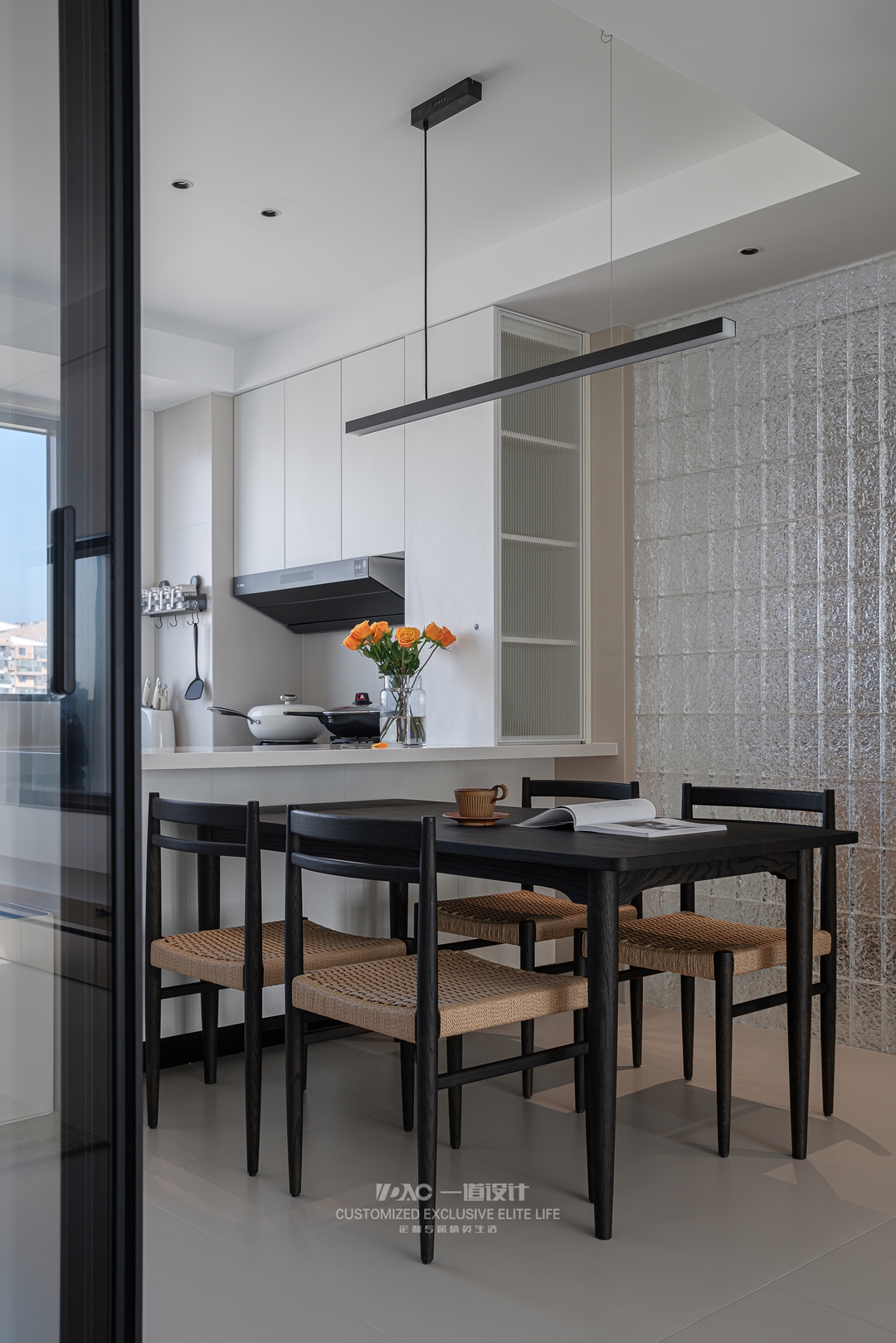 餐厨空间采用一体化,餐桌与岛台衔接,在功能布局上,烹饪区、清洗区与用餐区形成黄金三角,极大提升了使用效率。