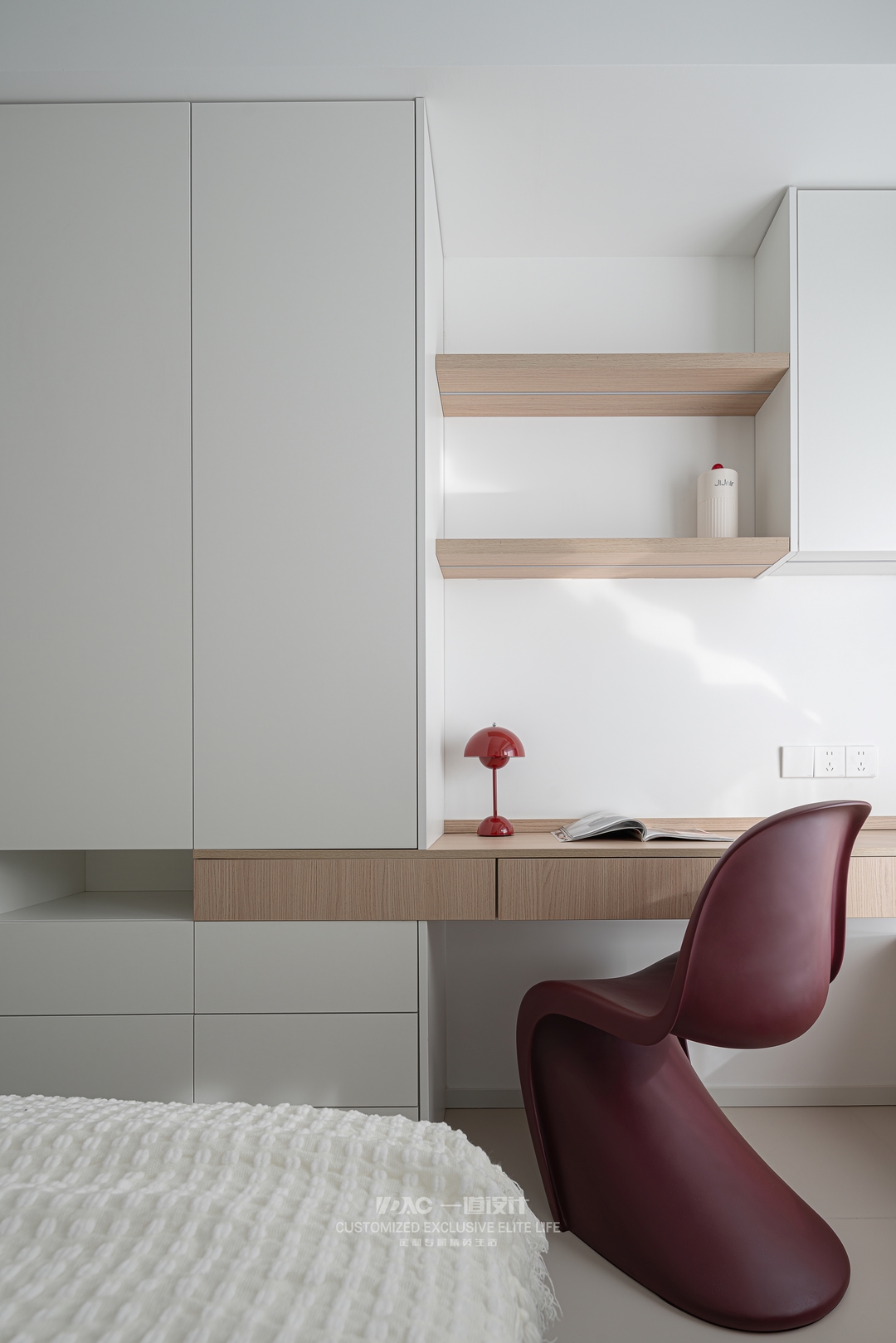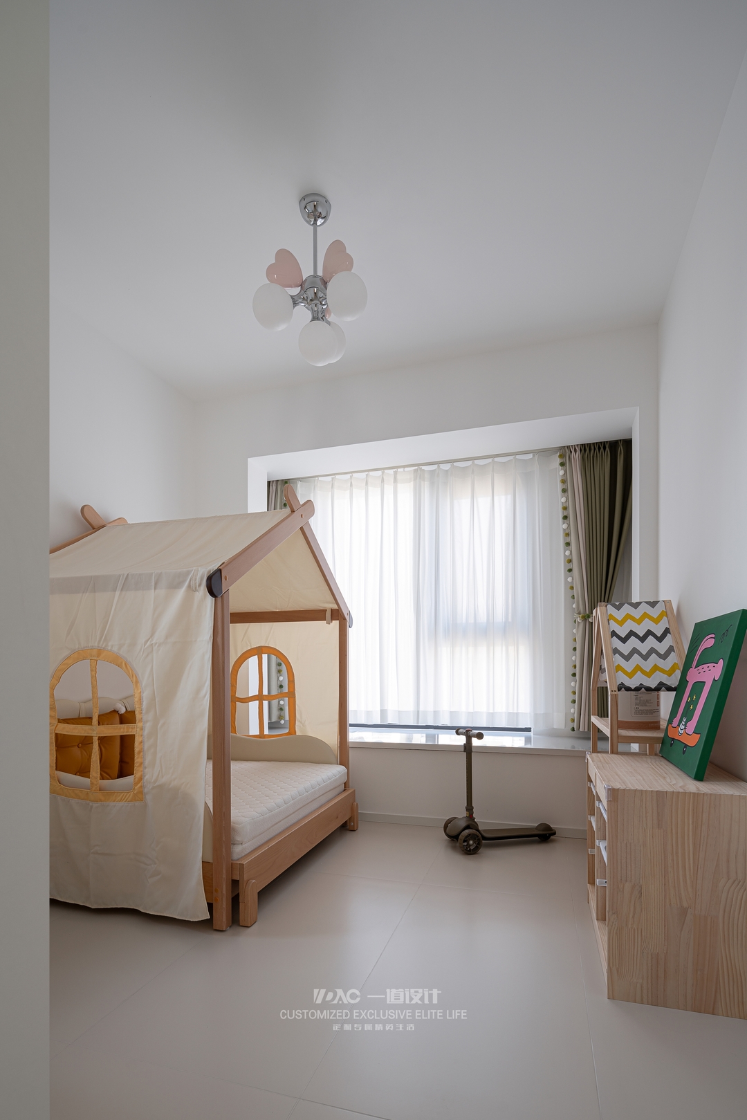 儿童房摒弃过多定制家具,选用可随孩子成长而更换的模块化成品家具。打造了一个具有成长性的空间,使房间能够伴随儿童不同年龄阶段的需求而灵活调整,既满足了当下使用功能,又为未来的改变预留了可能性。