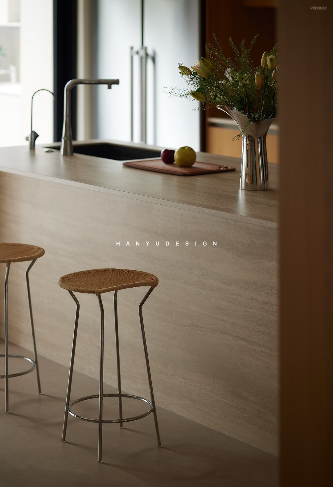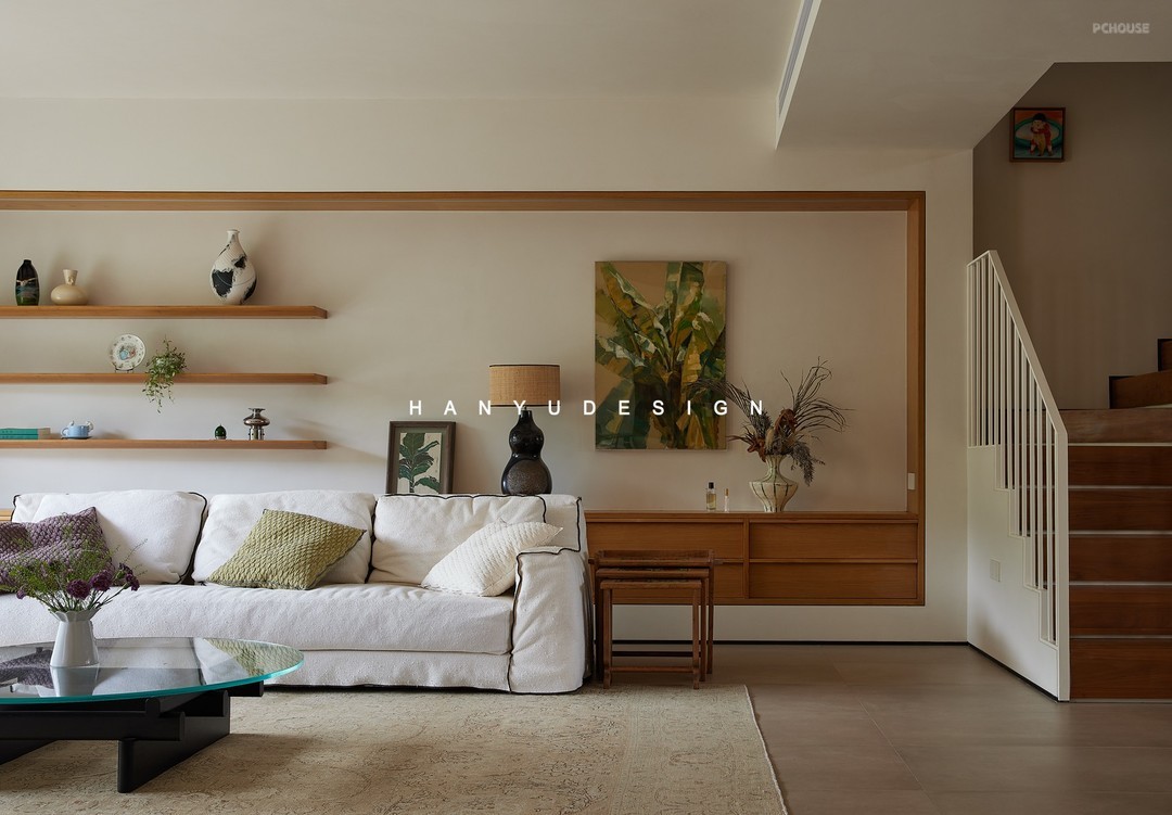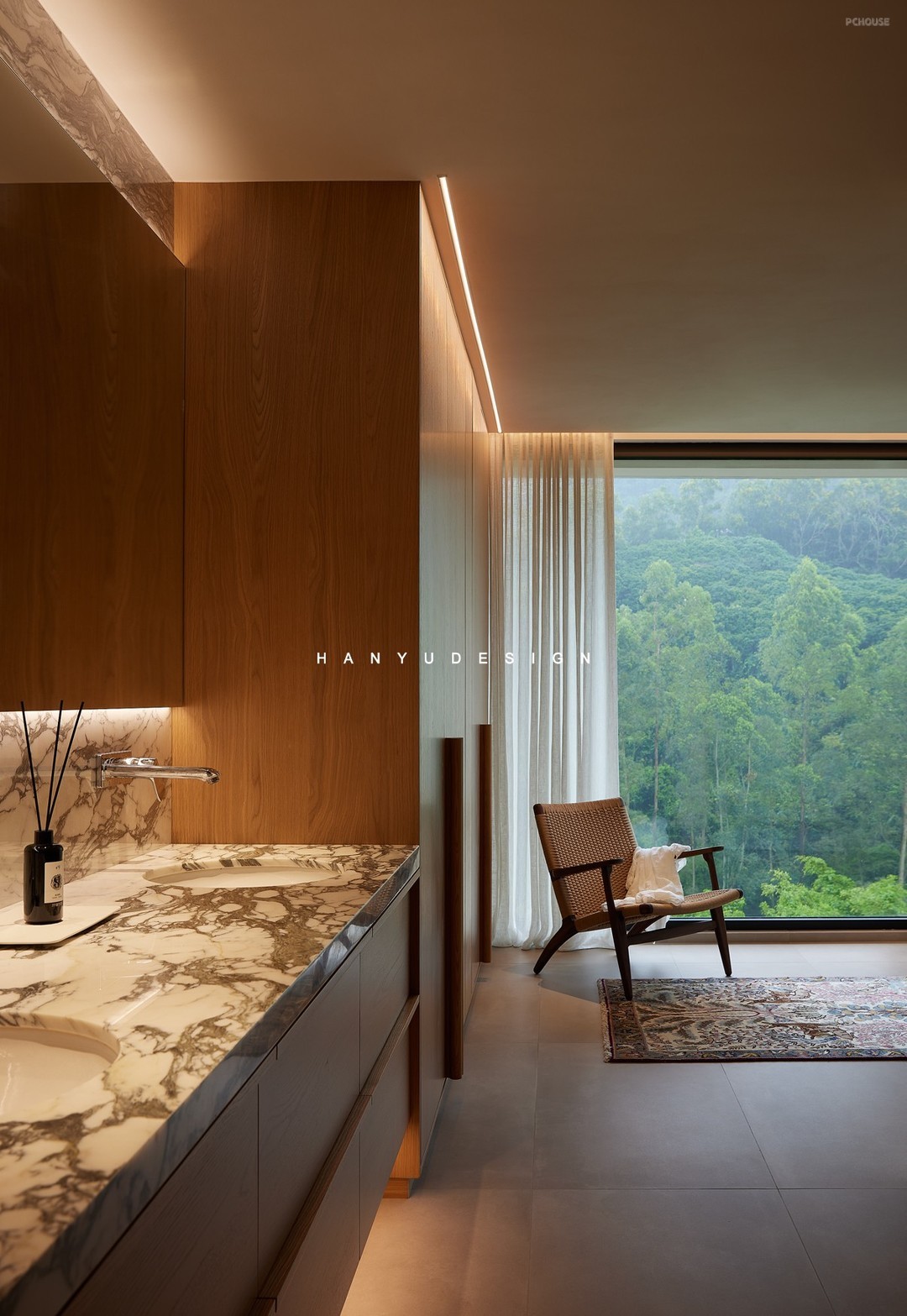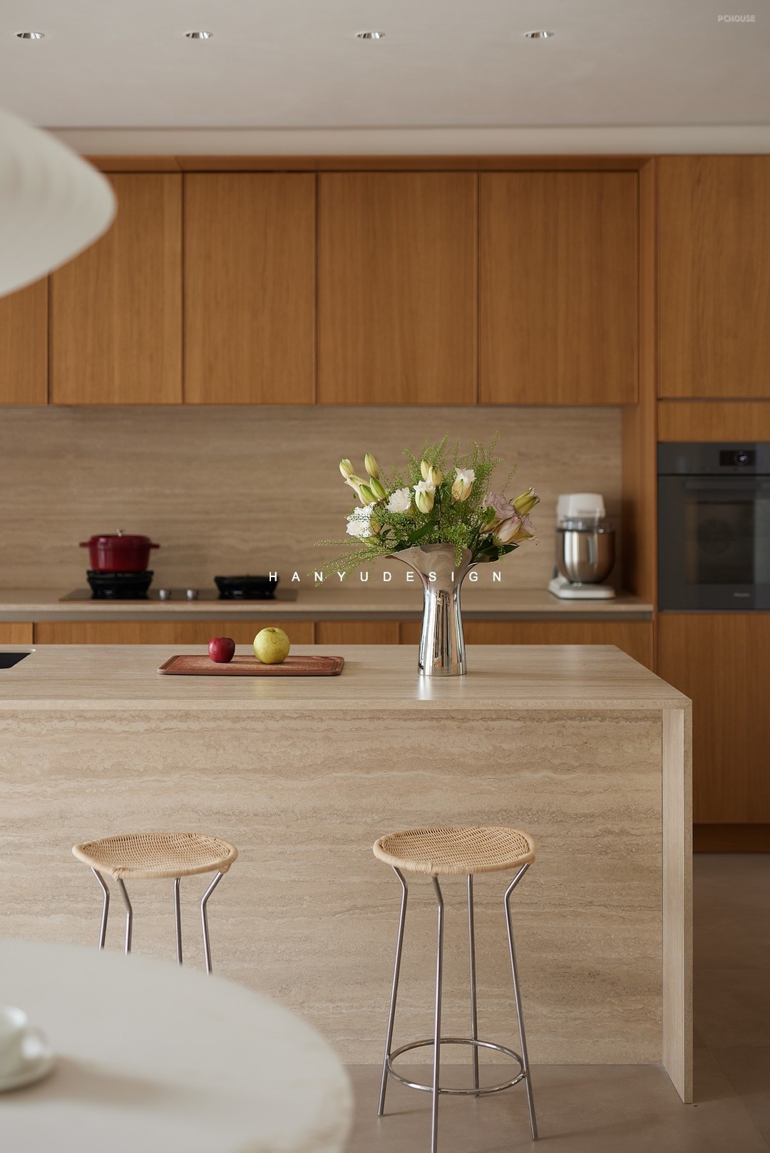 汲取木材的优雅与美感,以捕捉其自然之美,将感性的美学与理性的空间质感完美结合,这样的设计赋予了室内一种平和而宁静的氛围。温暖的质感与表面细腻的纹理在每一寸空间中交织,营造出一种恰到好处的精致与高端感。