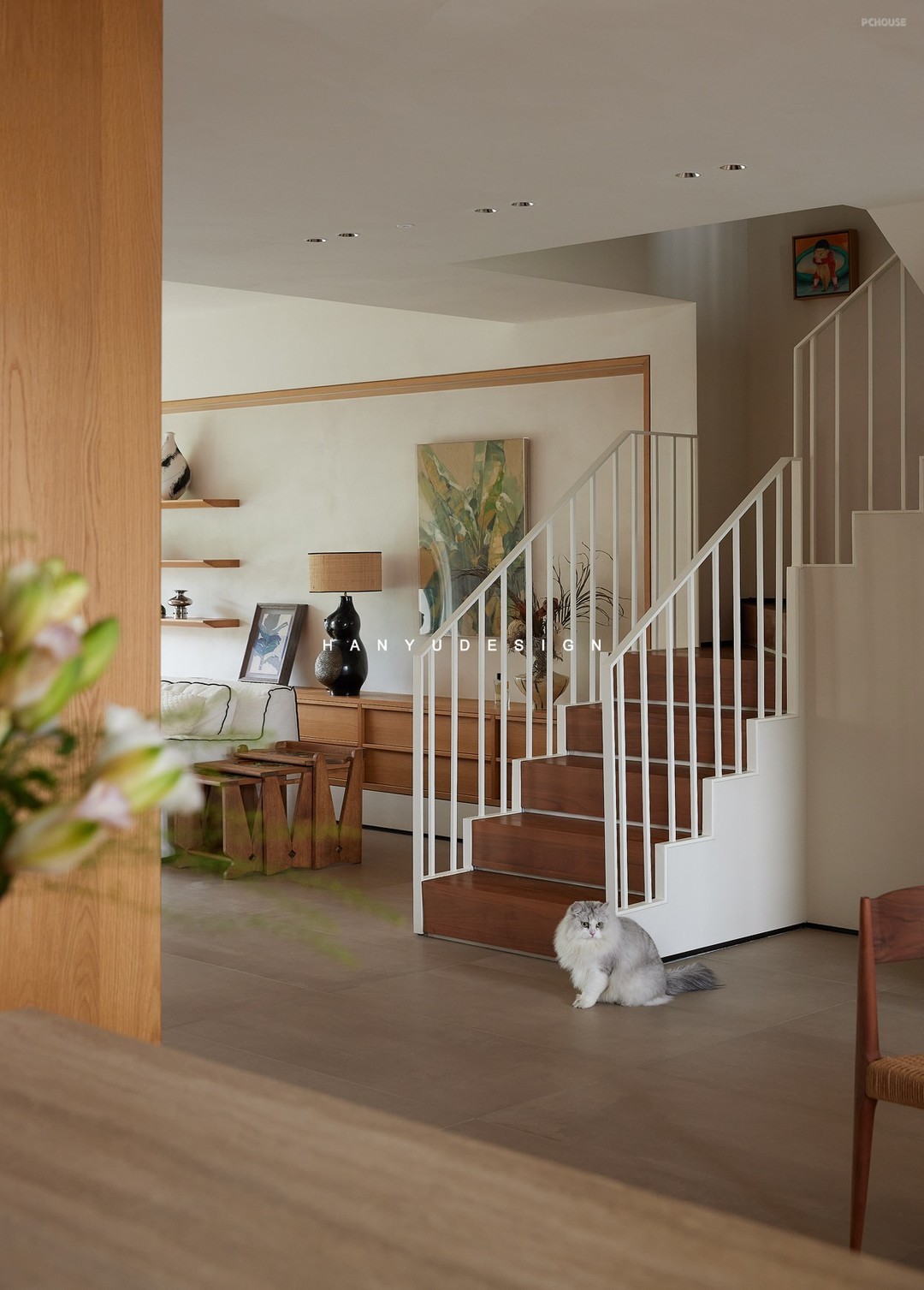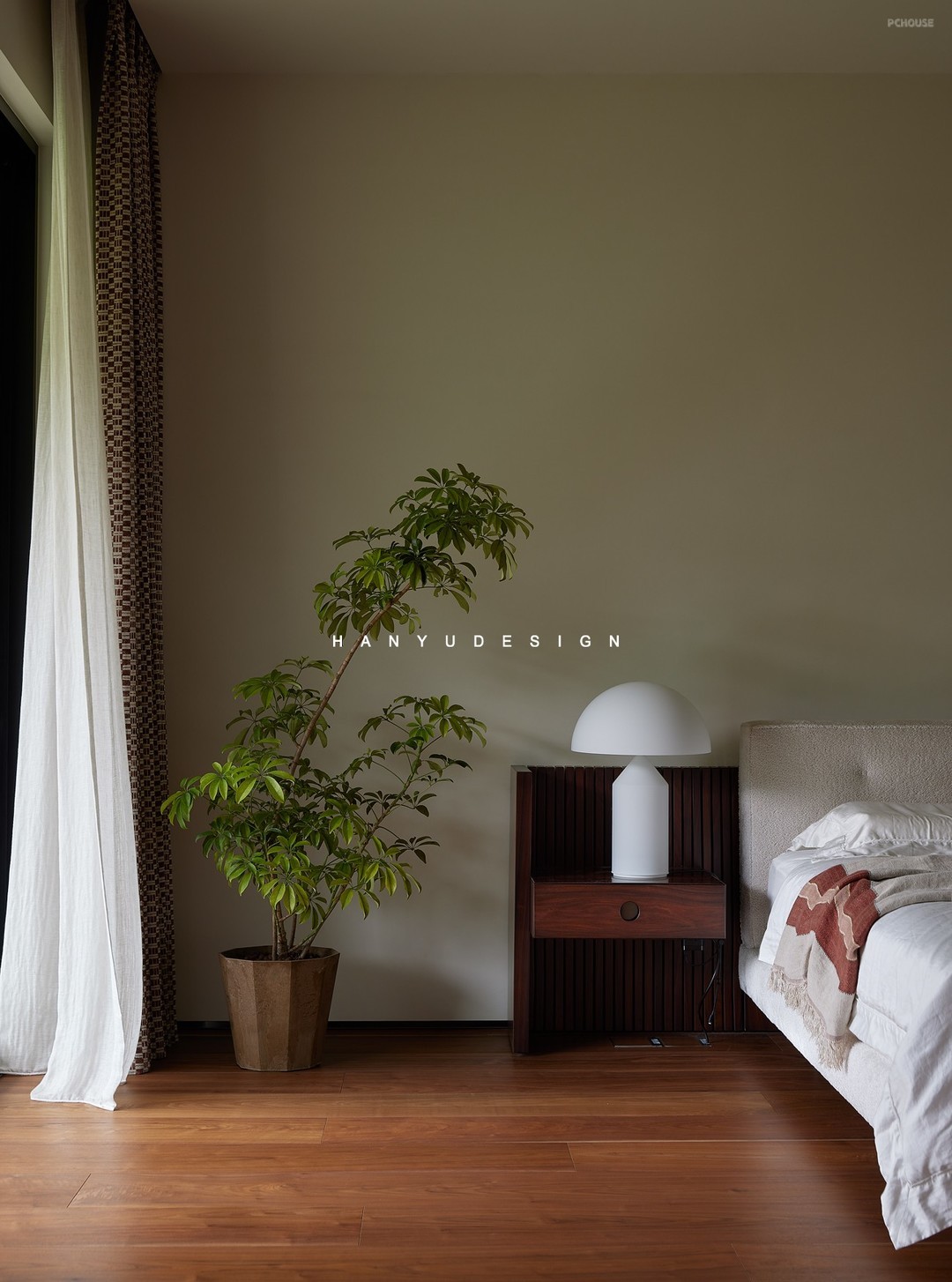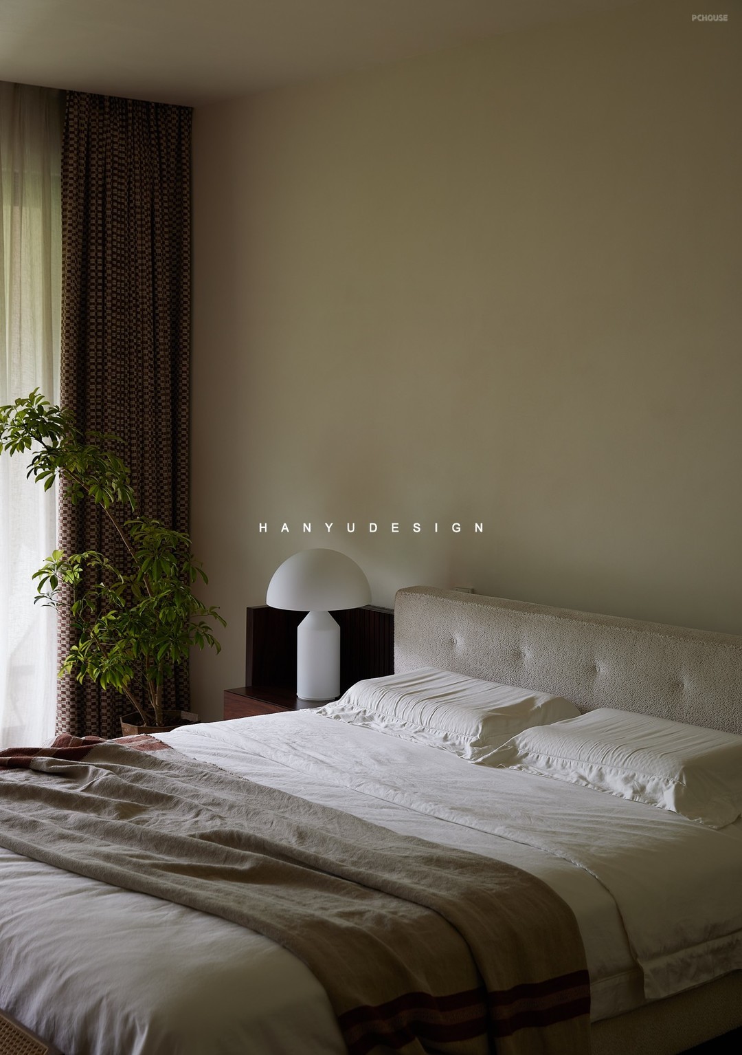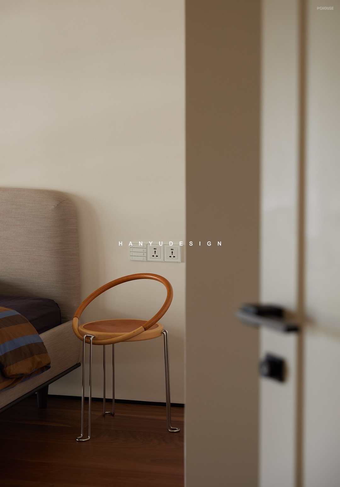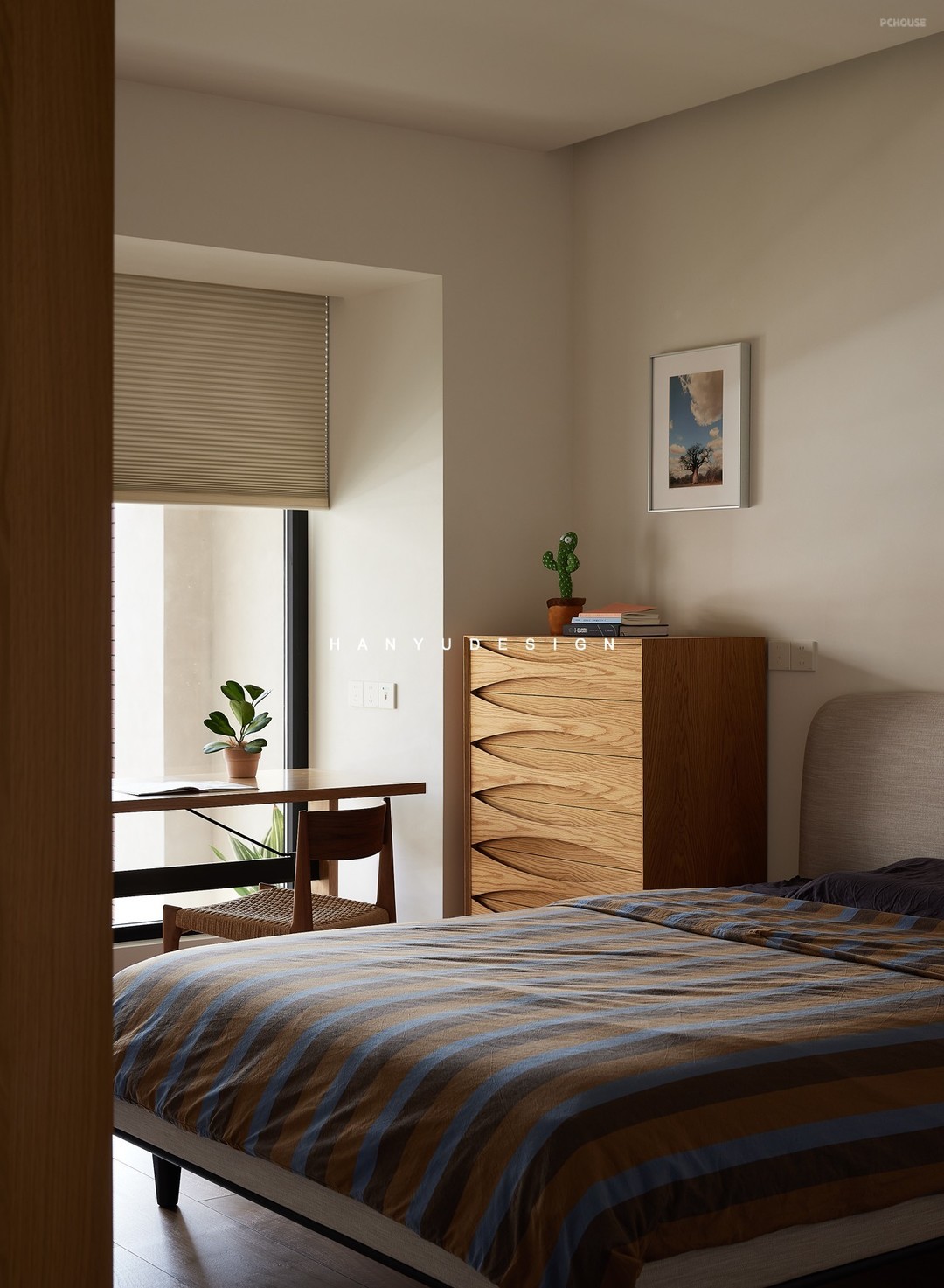二层以卧室功能为主,得益于复式结构的层高,主卧套间由搭建而成。全屋的木作均采用实木皮,温柔的气质,以一种平静的方式与空间交融渗透,勾勒温润素朴之感,在这样的空间中栖息,仿佛回到乡野之间,一切都显得如此真实自然。