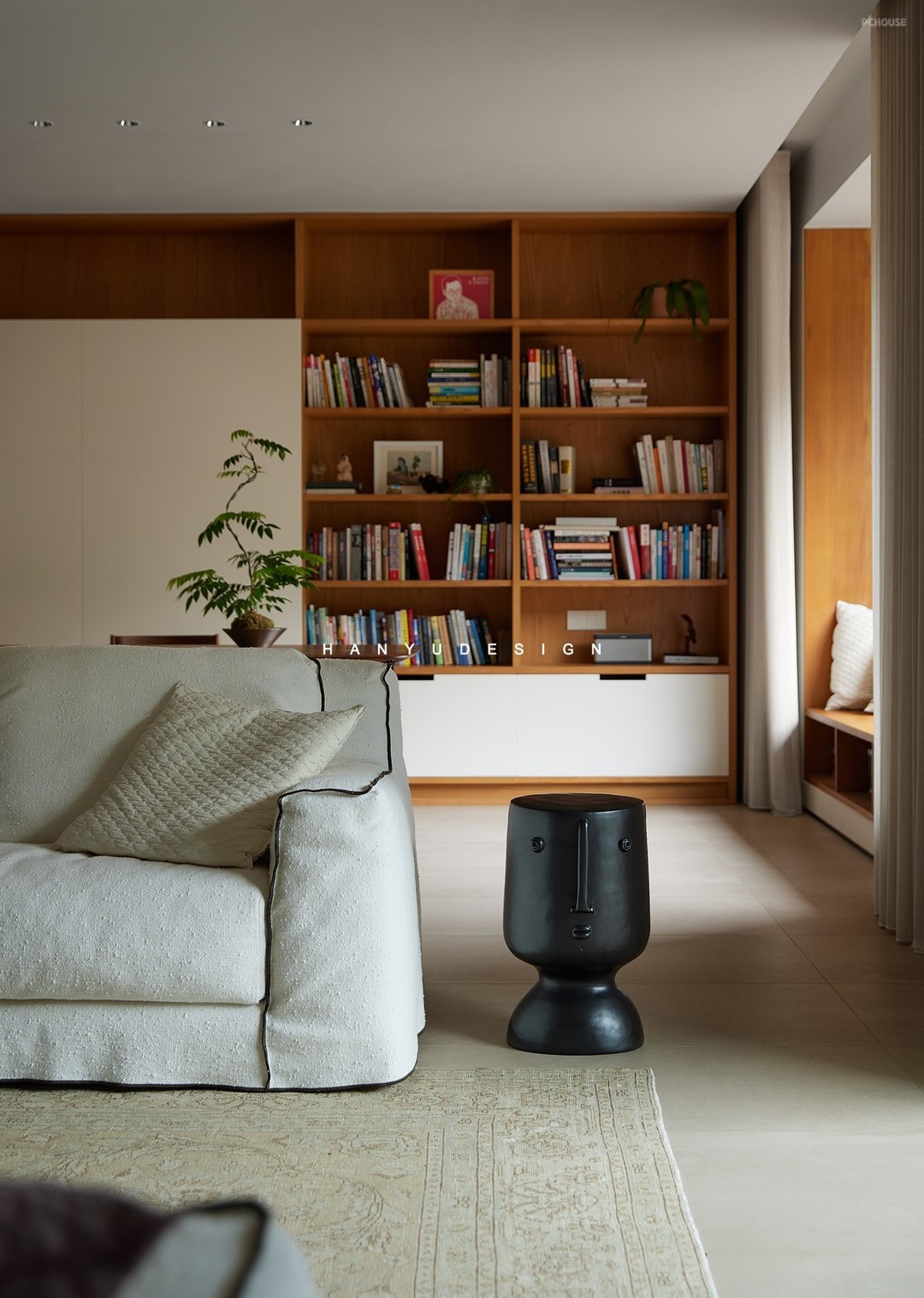 没有电视的客厅,显得更宽敞、宁静。极具个人色彩的软装配饰成为空间的焦点,美得淡然自持,自由流动的场域相互连结,串连起一个愜意慵懒的居住环境,勾画出浑然天成的身心享受。