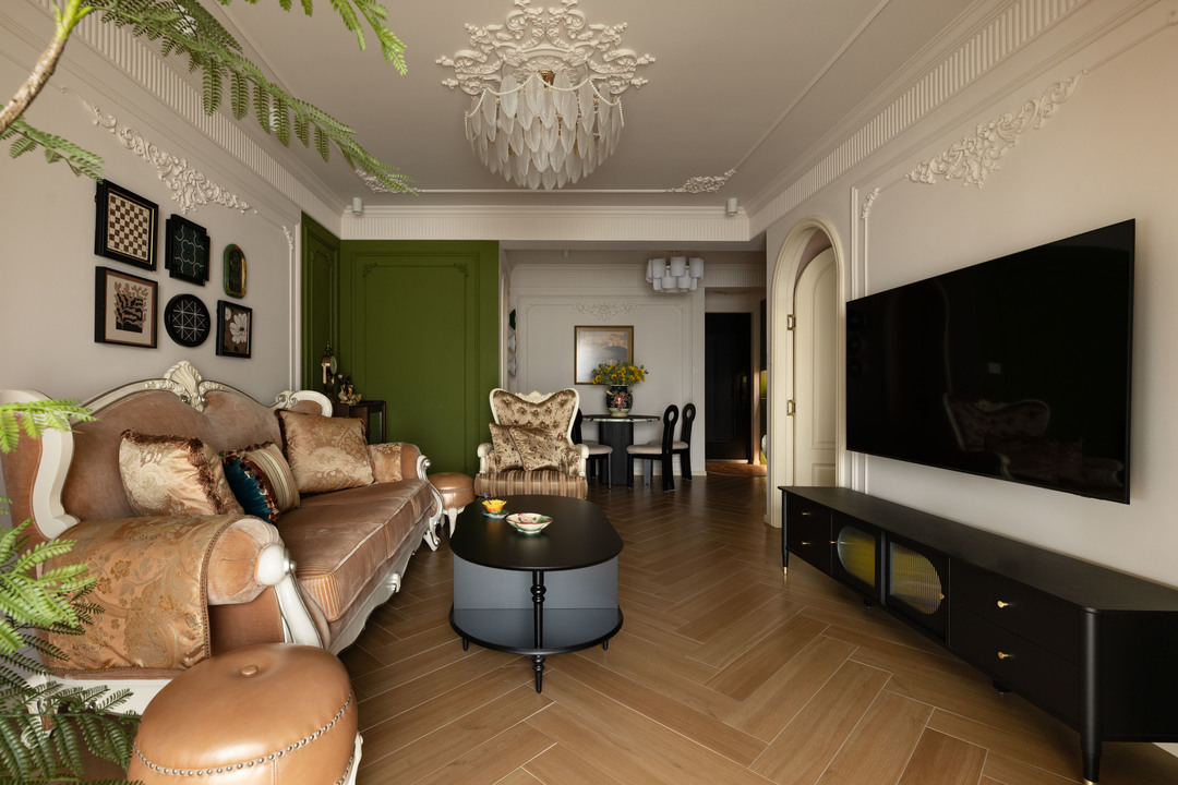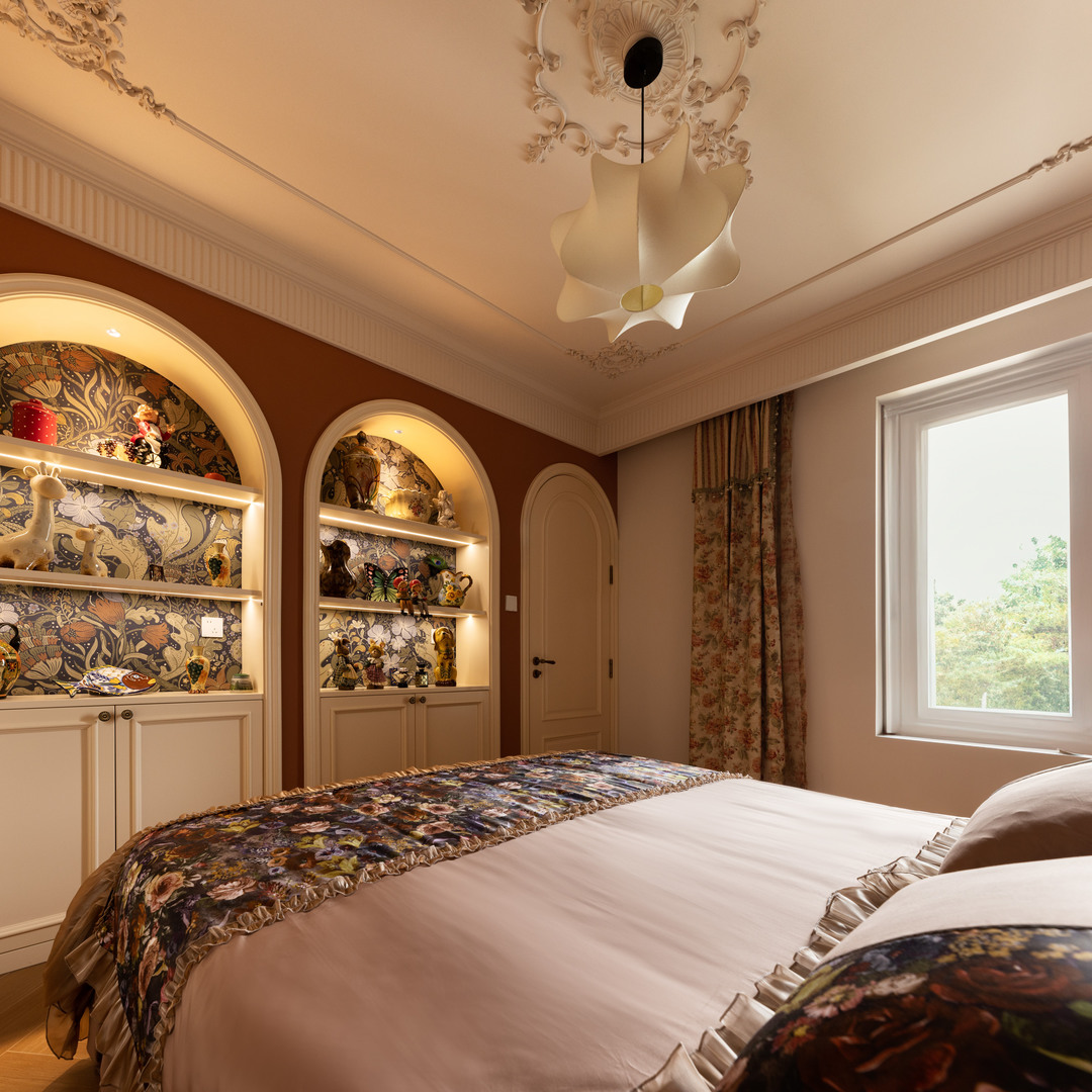 项目要求:主卧退休夫妇居住,次卧留给定居在上海的女儿与女婿, 旧房改造需利用上原有象牙白欧式沙发、玄关柜、主卧衣柜、主卧双床床、留声机、陶瓷摆件、艺术摆件、台灯、壁灯。