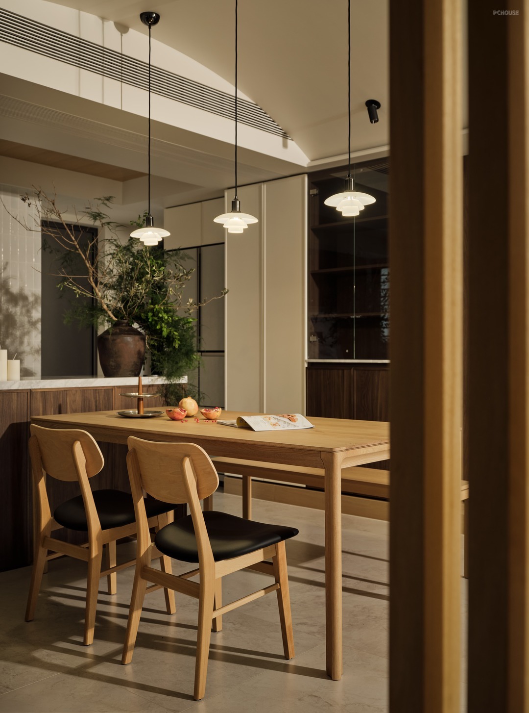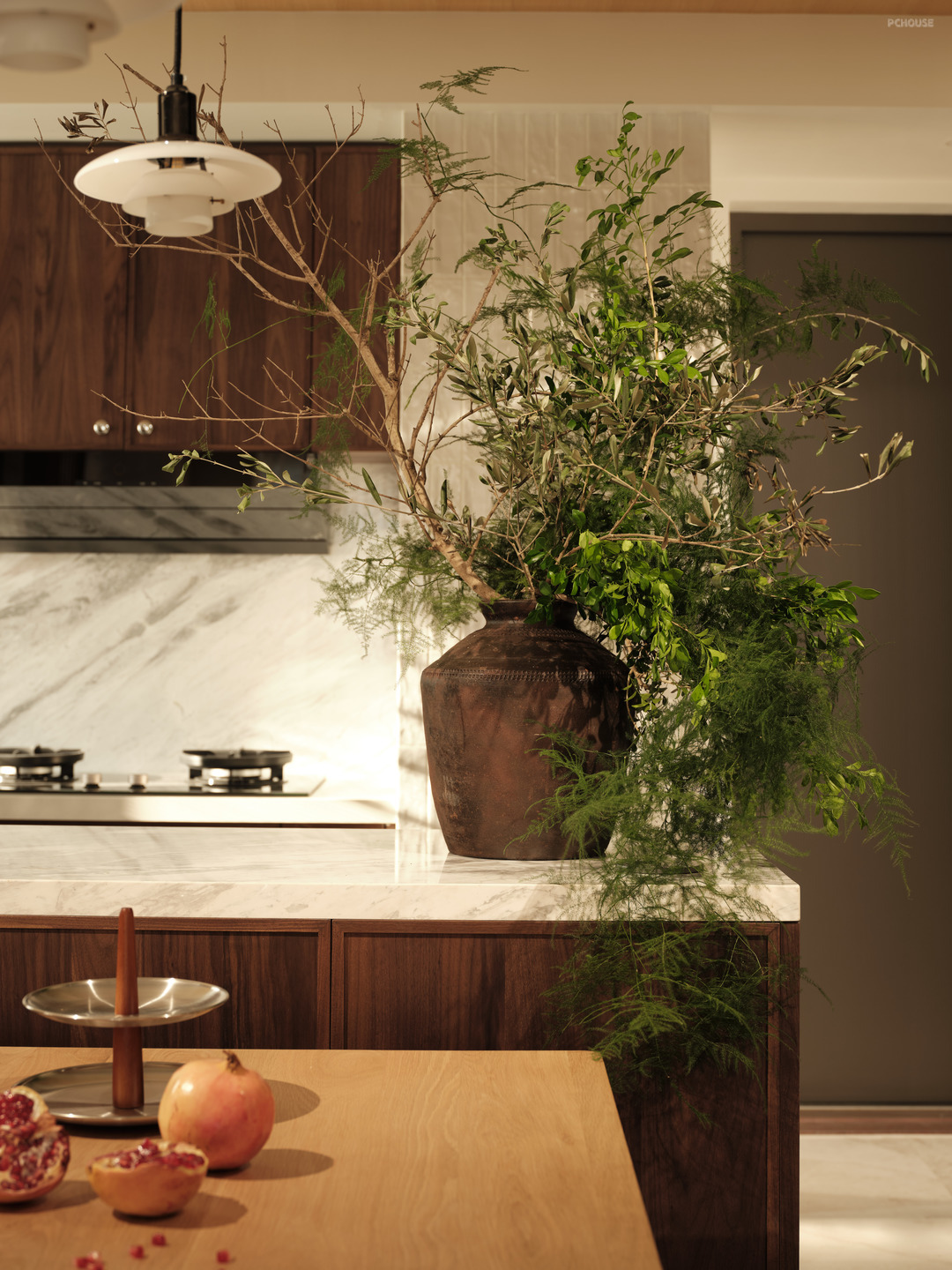 以岛台为中心的环形动线除了便捷日常使用,同时轻松应对家庭聚会的场景
