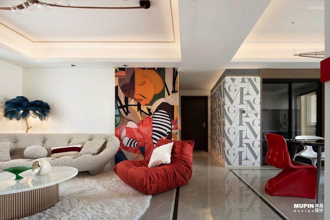 “极简是删繁就简的空间哲学,以利落线条与纯净底色勾勒秩序感。”本次家居设计以 “极简与明艳共生,收纳与艺术同频” 为核心理念,为幸福的一家三口量身打造兼具功能性与美学价值的居住空间。在满足大量首饰收纳需求的基础上,通过色彩碰撞、材质对比与创新设计,让每个角落都彰显独特个性。