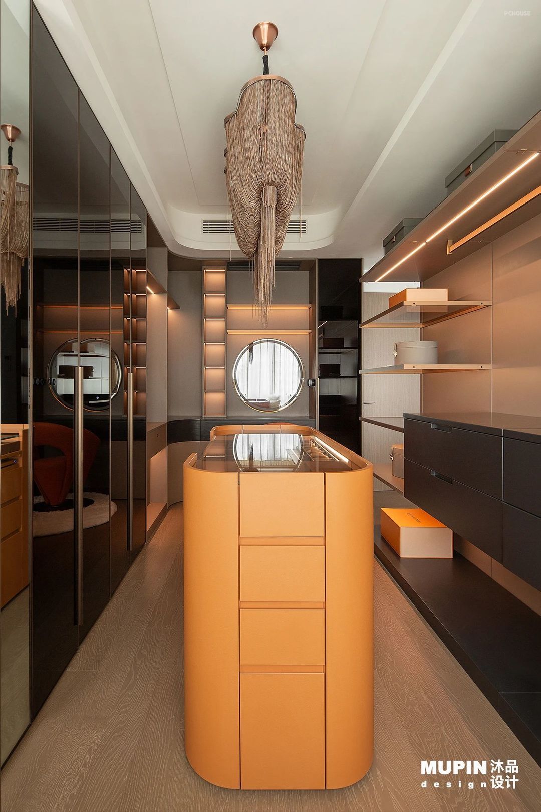 将衣帽间中间区域设置为独立的首饰收纳柜,