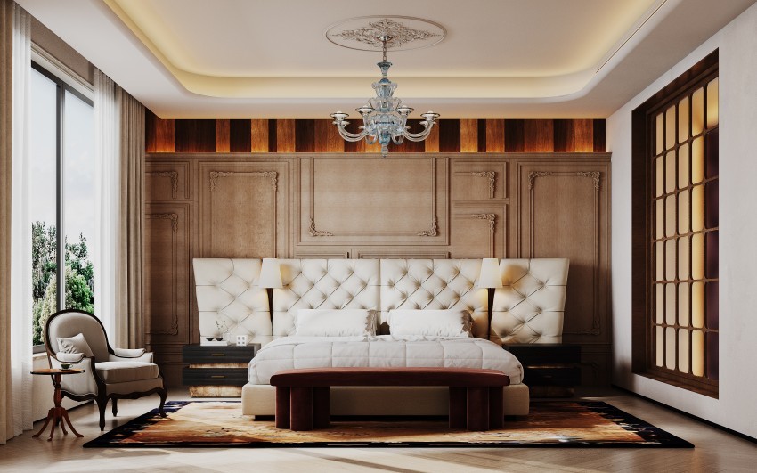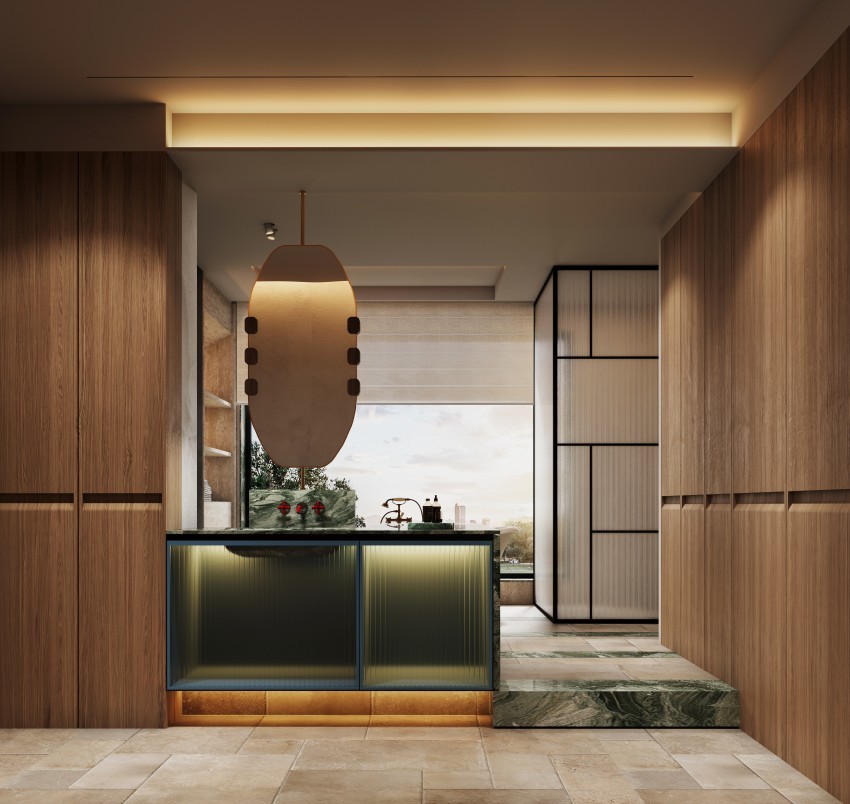 - 卧室三面环景,智能雾化玻璃一键切换通透/私密模式