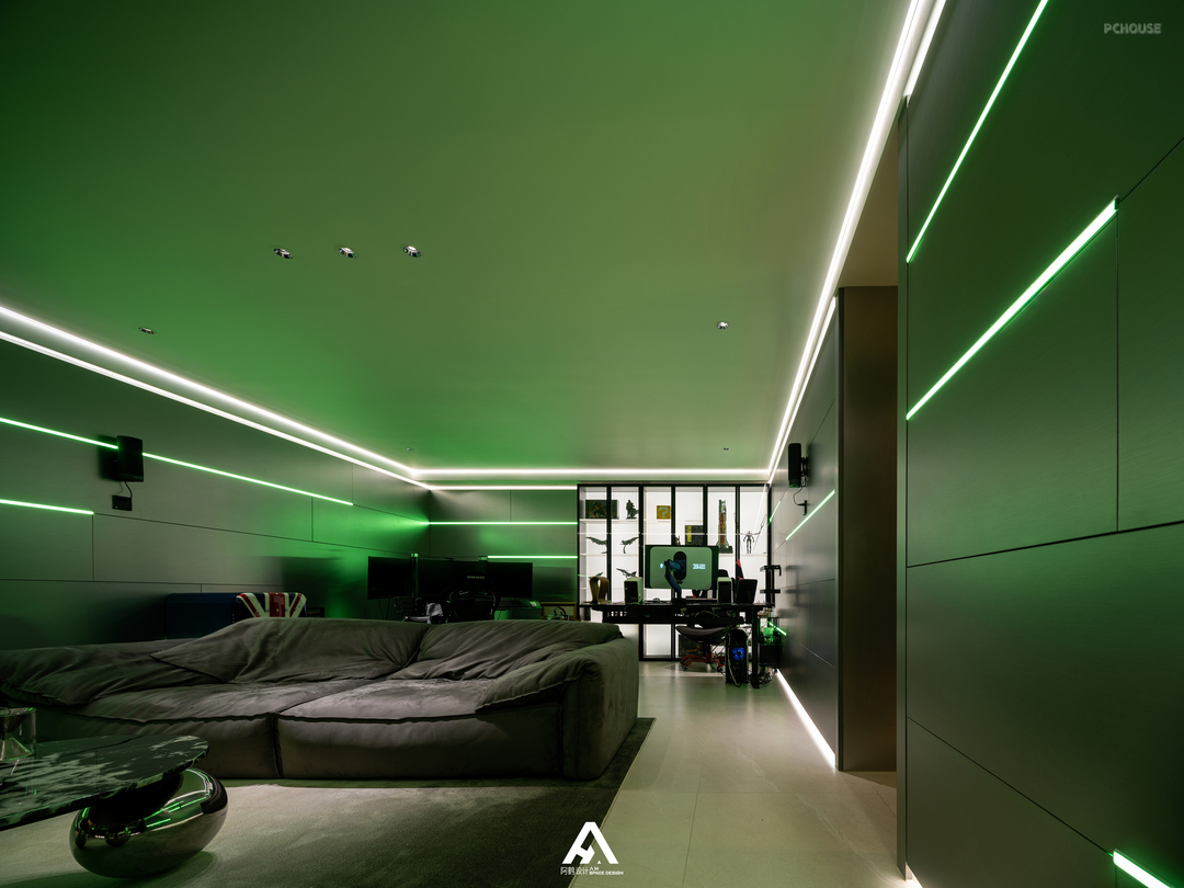 电竞区配备专业电竞椅,灯光暗下,屏幕亮起,瞬间开启热血战斗模式,成为游戏迷的天堂。影音区超大屏幕,搭配恰到好处的灯光,在家就能享受影院级视听盛宴。