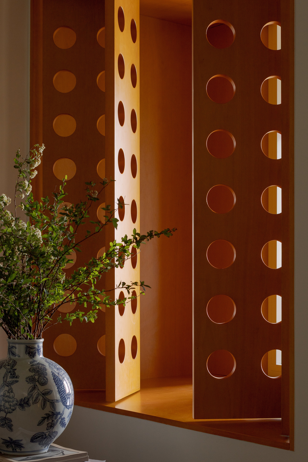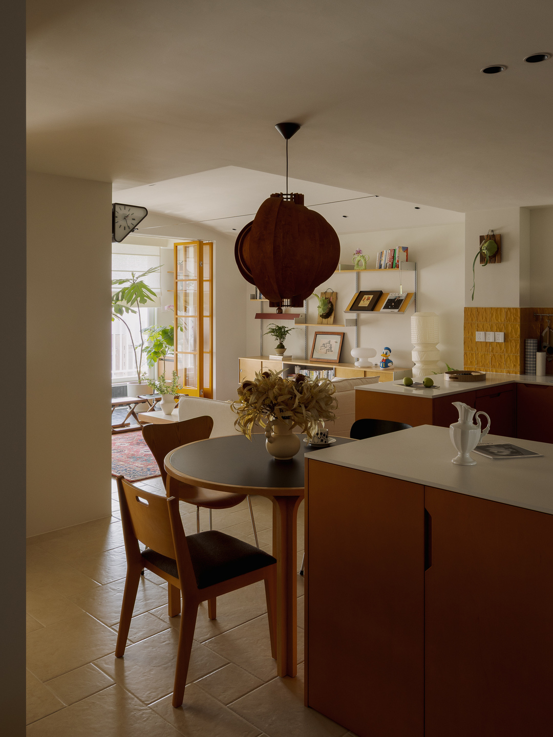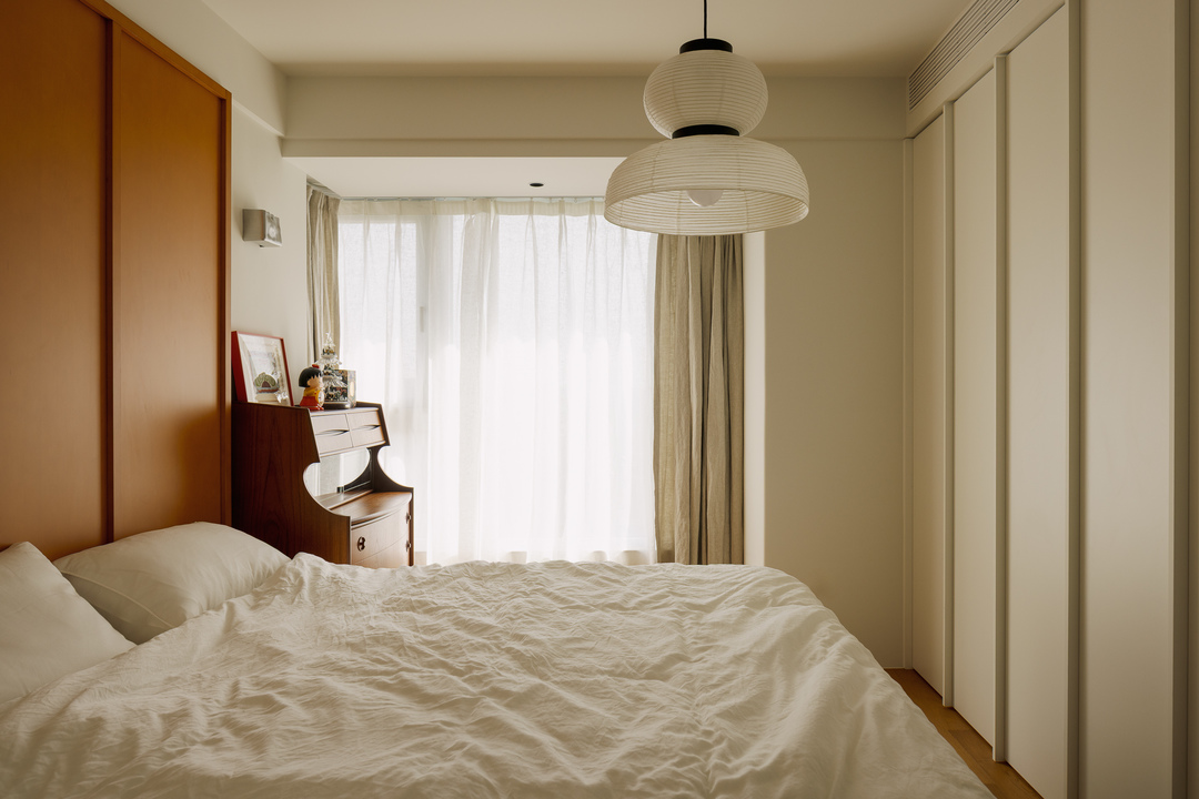 在这里,室内设计的角色被分为两个层面,一是在区域格局方面基本满足生活需求,二来是透过定制化和家具陈列的搭配,掌握好材质颜色的比例,适当增添跳色,展现合乎屋主喜好的规划。“以现有的结构为框架,简化创意笔触,透过专业视角让空间成为简单却令人难以忘却的家空间”。