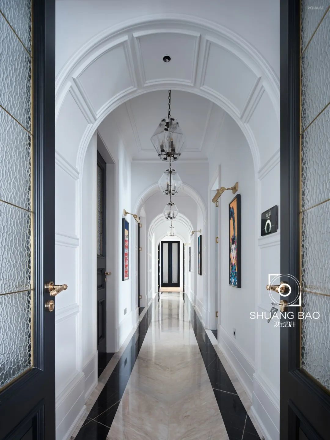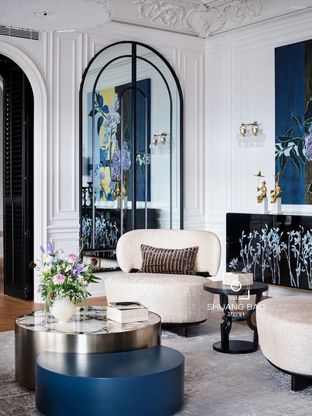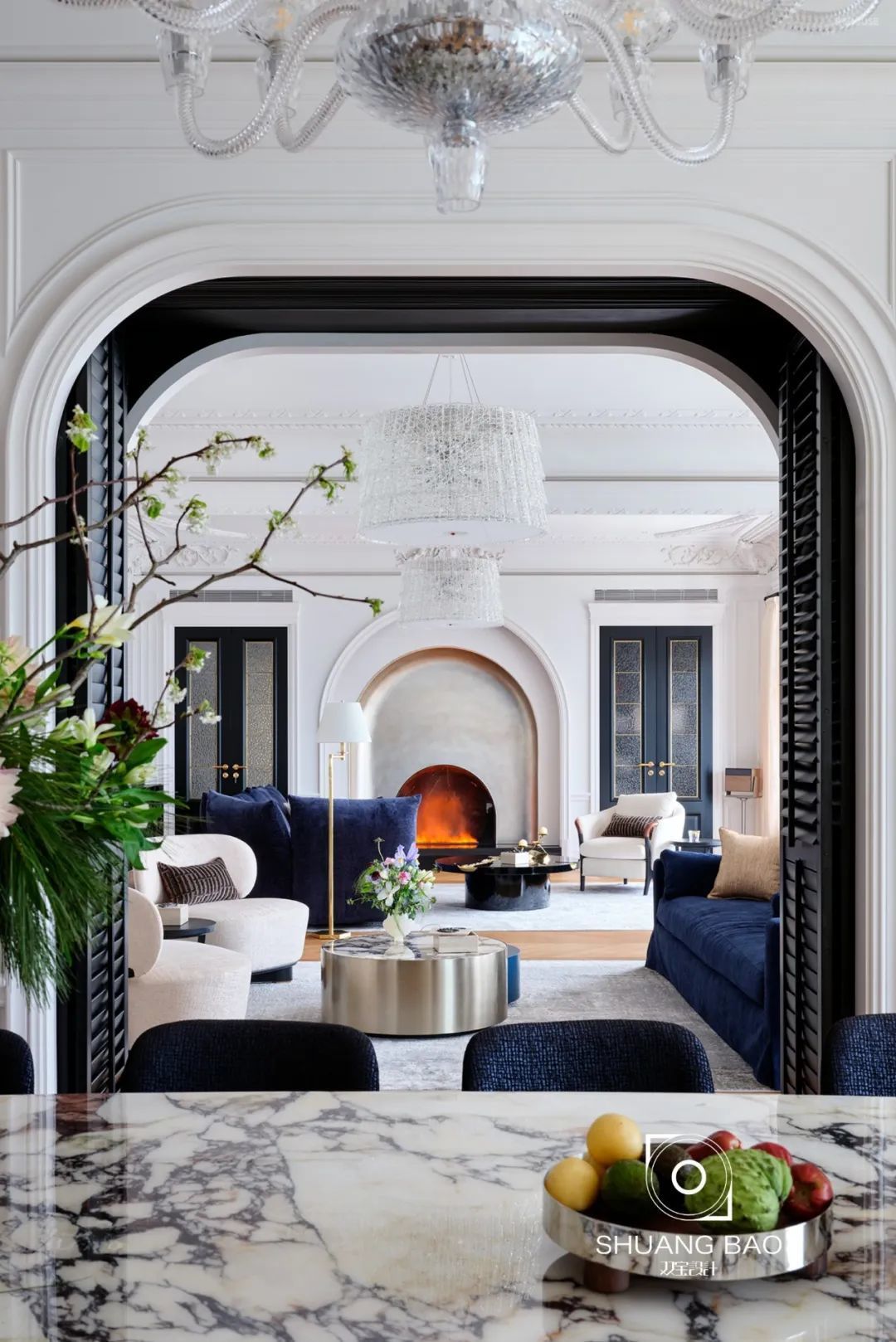 客厅与餐厅间,双开门弧形门洞流淌着浓郁法式韵味,且门洞内设调节百叶系统,可自由切换空间的通透与私密。百叶开启时,空间动线自然舒展,客餐厅合为一体,契合家庭聚会等开放场景需求。视线所及无阻隔,让彼此互动更显亲密;百叶闭合时,客餐厅成为独立功能区,还能实现空调节能化,动静分区互不干扰。无界与有形,彼此默契共生。