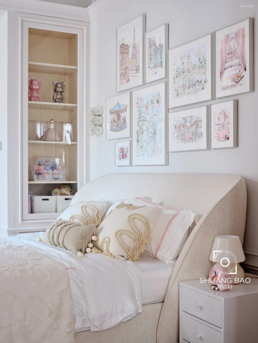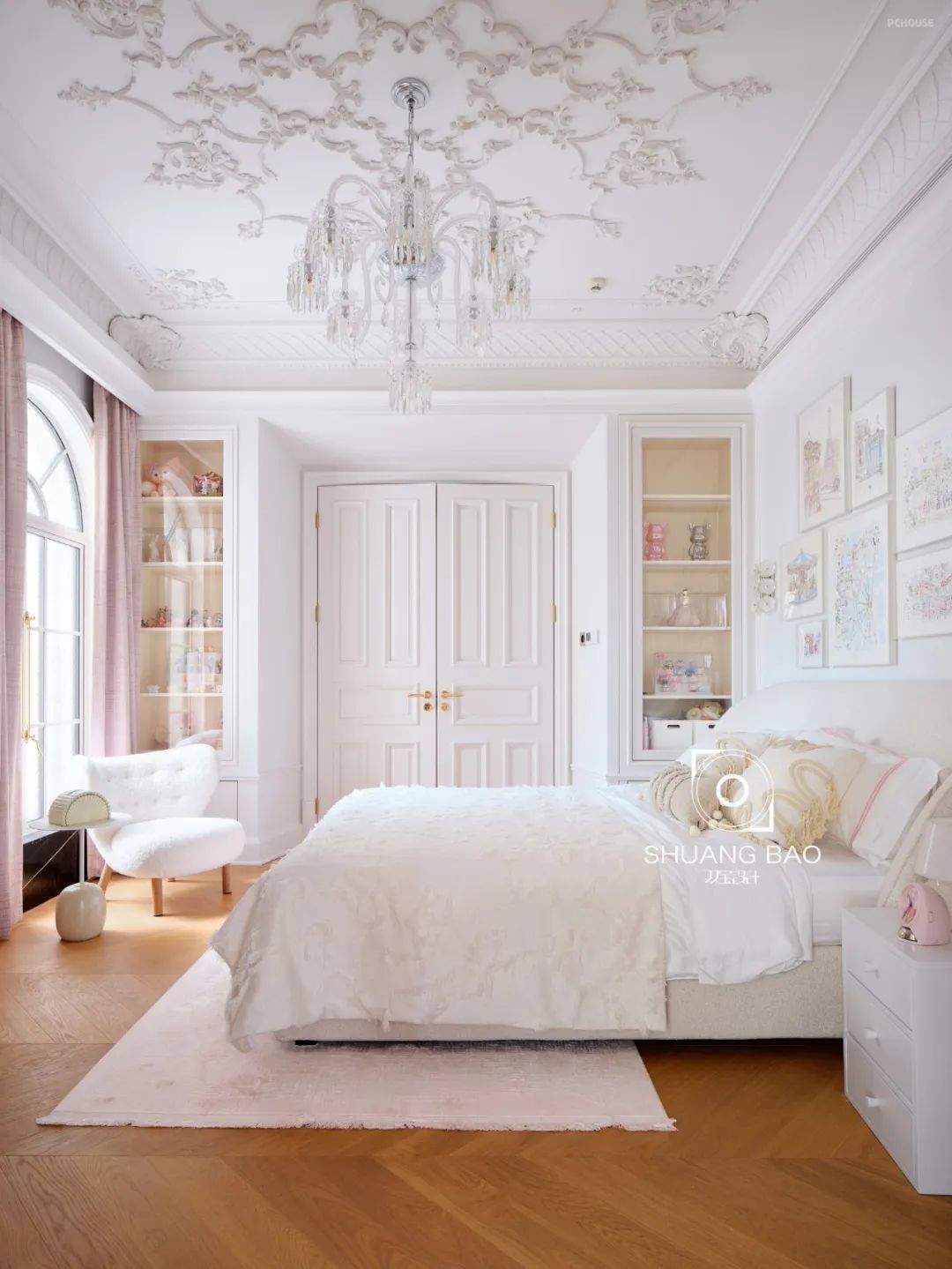 屋主女儿性格温婉浪漫,套房以梦幻蜜桃粉为主色调,从墙面到床品,从窗帘到装饰摆件,柔和甜美的粉色系营造出如童话般的浪漫氛围,充满少女心。