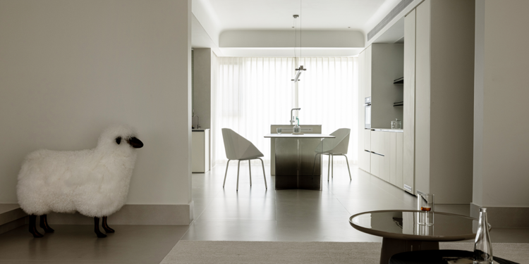 在极简主义的外衣下,低饱和度色彩营造出平稳自然的现代空间,设计团队以一种点到为止的设计干预,通过精心布局的细节与材质组合,在留白中构建出动态且丰富的视觉叙事,带来超越表象的深度体验。