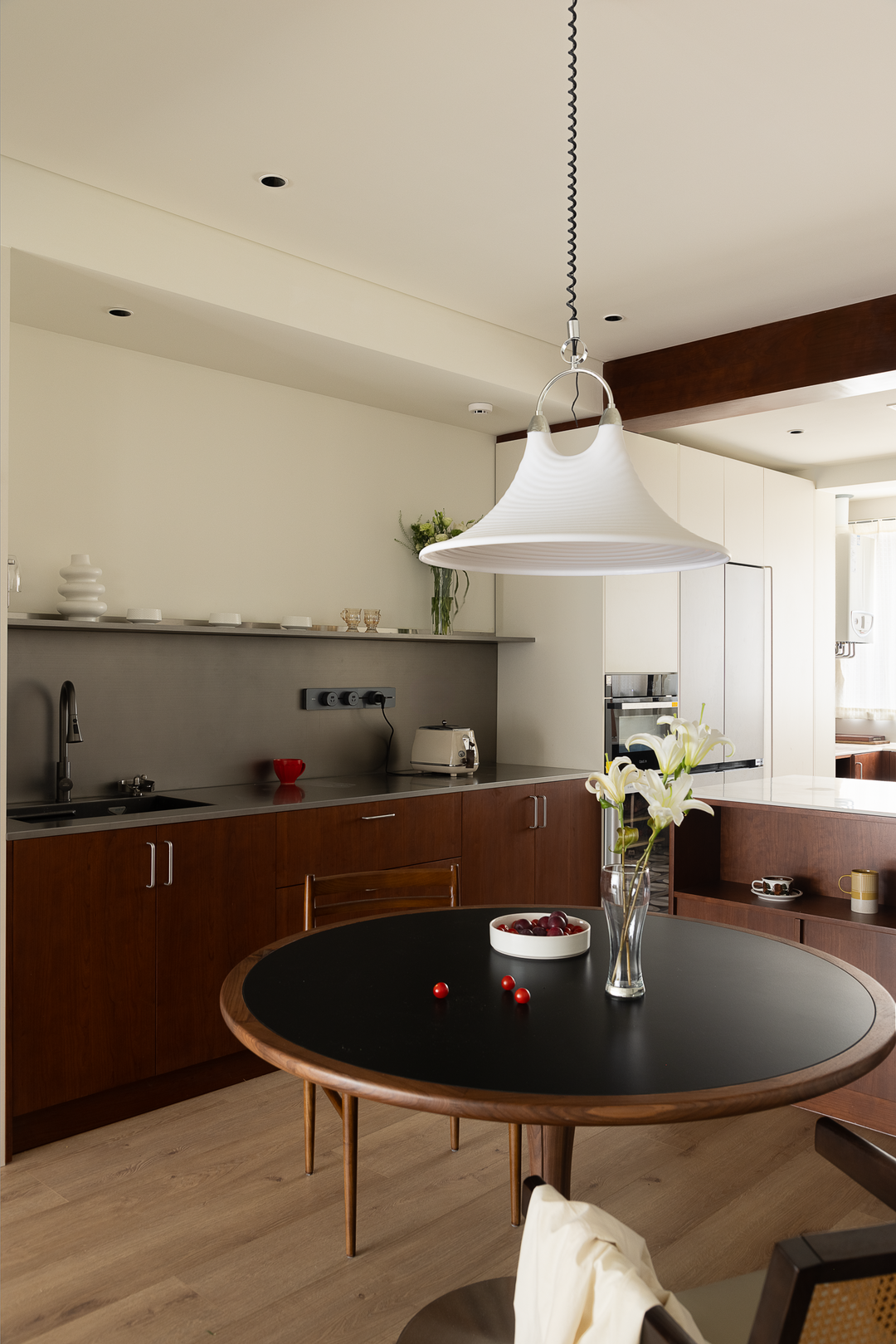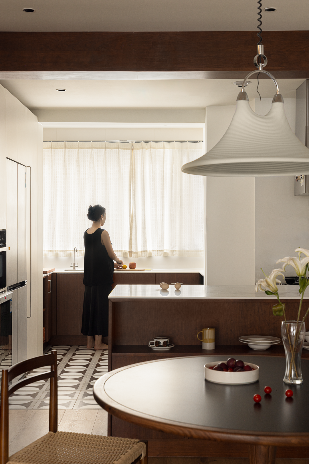 1.2米的圆形餐桌,既是家人围坐的温馨场所,也是日常生活的一处静谧角落,功能与情感在这里悄然交融。