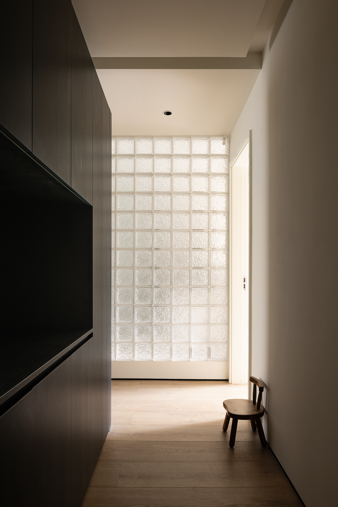 在原始承重墙不变的情况下,我们通过优化三个卧室之间的交通空间,从无到有创造出了家政区域。