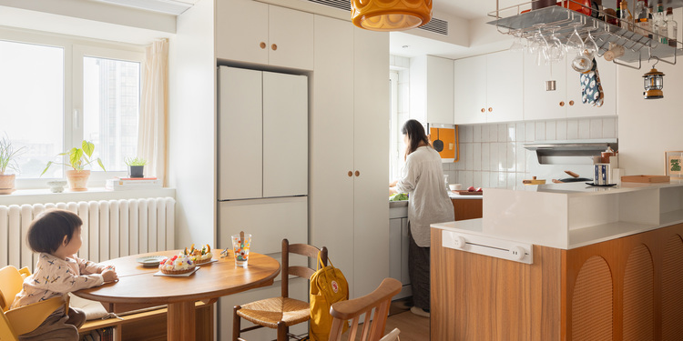 业主和我们都觉得,孩子应当是家庭生活的重要参与者,因此在空间的小细节里面,我们都进行了适合儿童的调整,以便孩子能够更加自主地探索与使用,充分发挥空间的亲子收育功能。