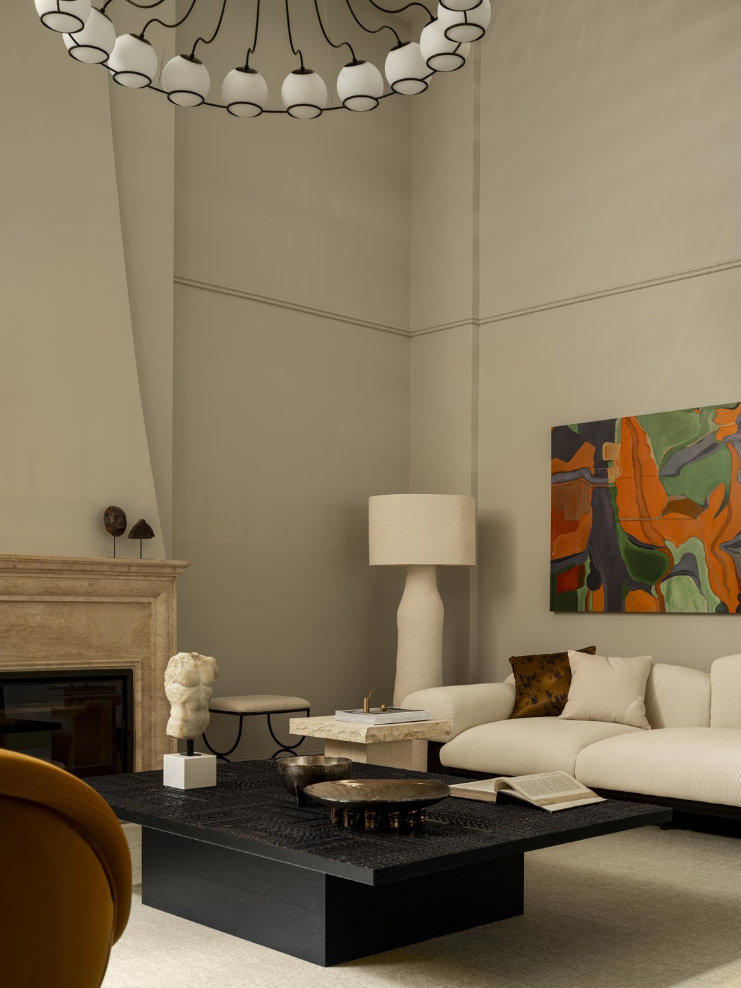 挑空客厅以真火壁炉为中心展开,壁炉线条简洁而优雅,洞石材质的肌理隽永细腻,当炉火静静燃烧,没有过多的喧嚣,只有一份宁静与典雅在空气中流淌,让人的心灵得到放松和舒缓。