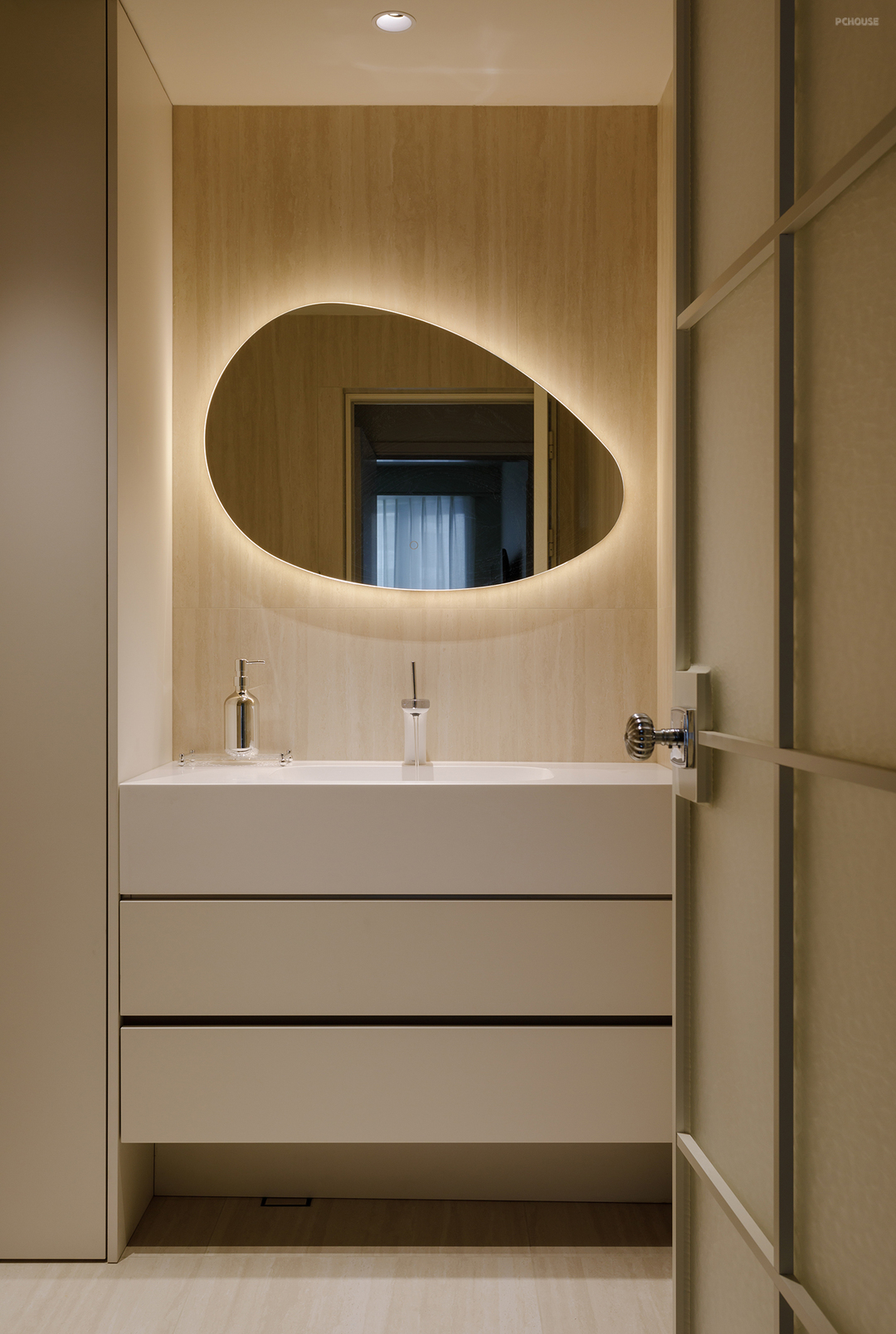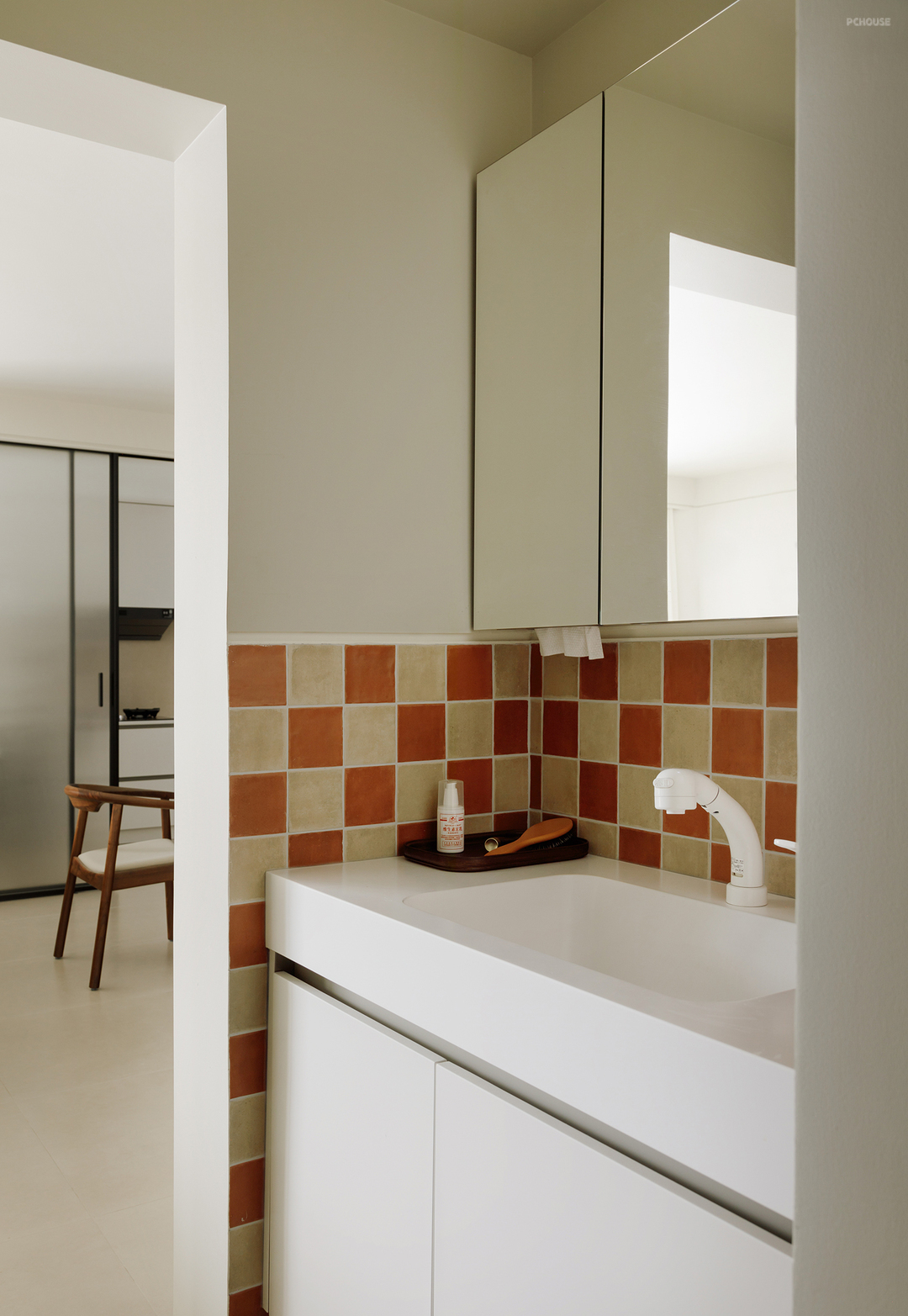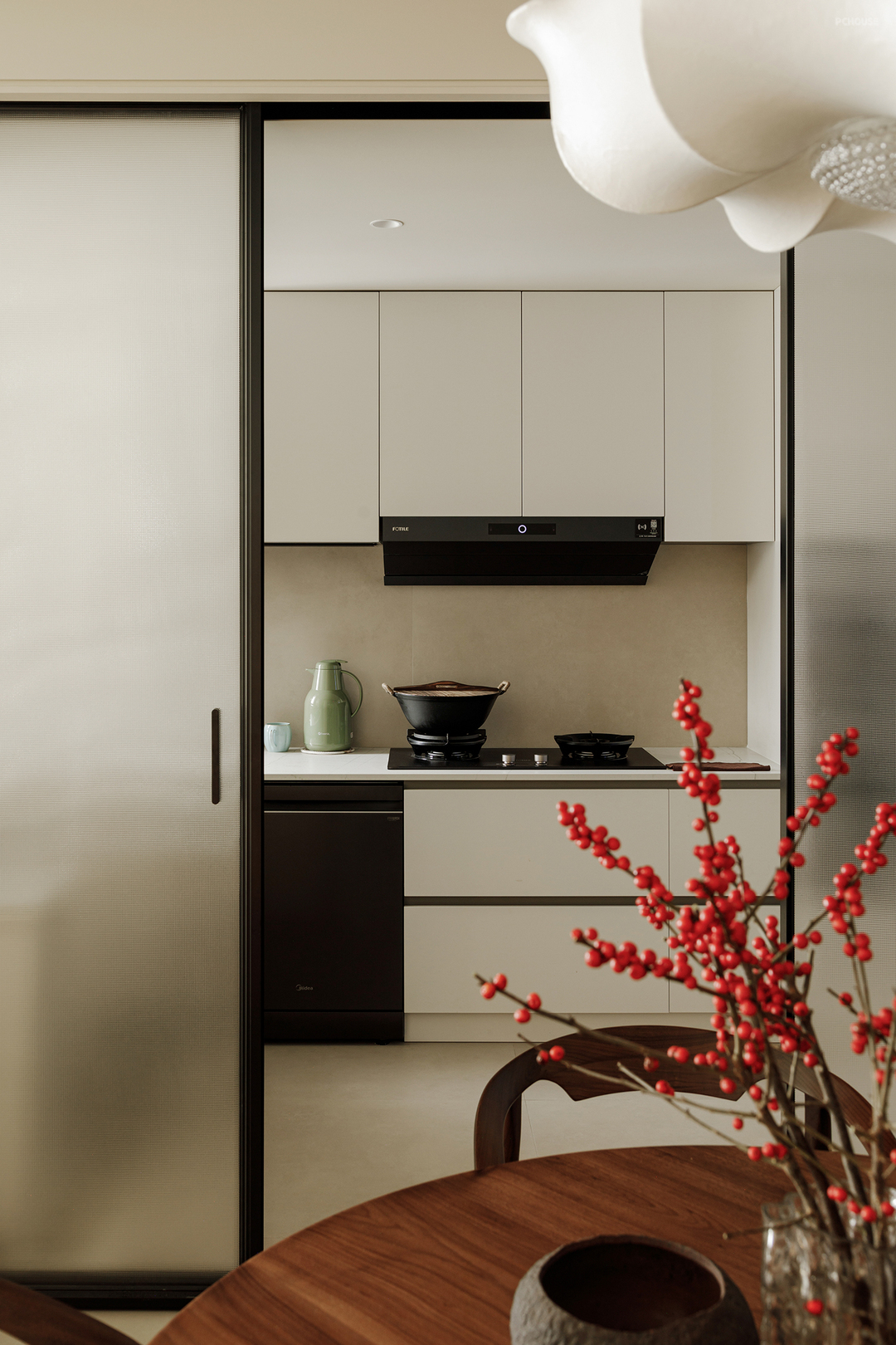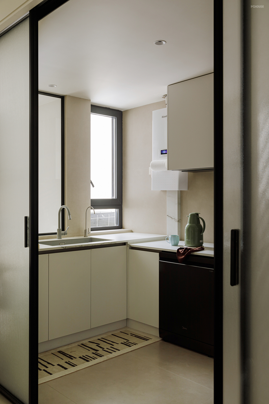 抽缝设计沿用厨房墙面,于细节处彰显空间统一调性,予人精致不张扬的视觉享受。
