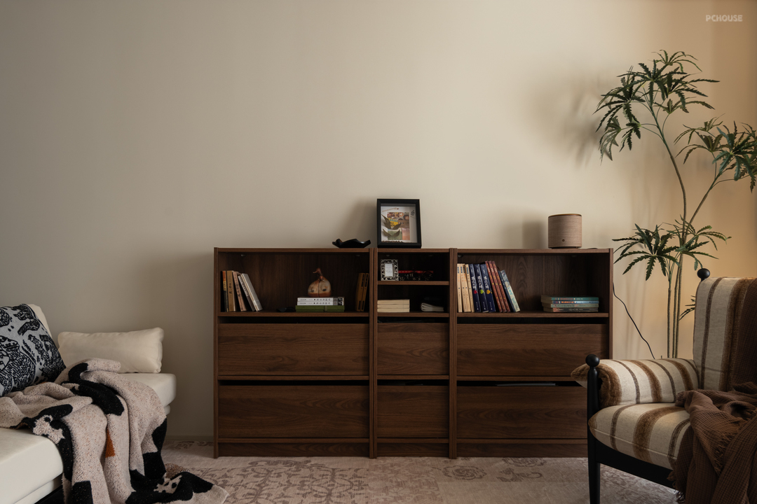 家有长辈,收纳充足必不可少。玄关有三个鞋柜,客卧有换季收纳柜,走廊有家政柜,母亲房还有一个800库,在收纳上绝不含糊。
