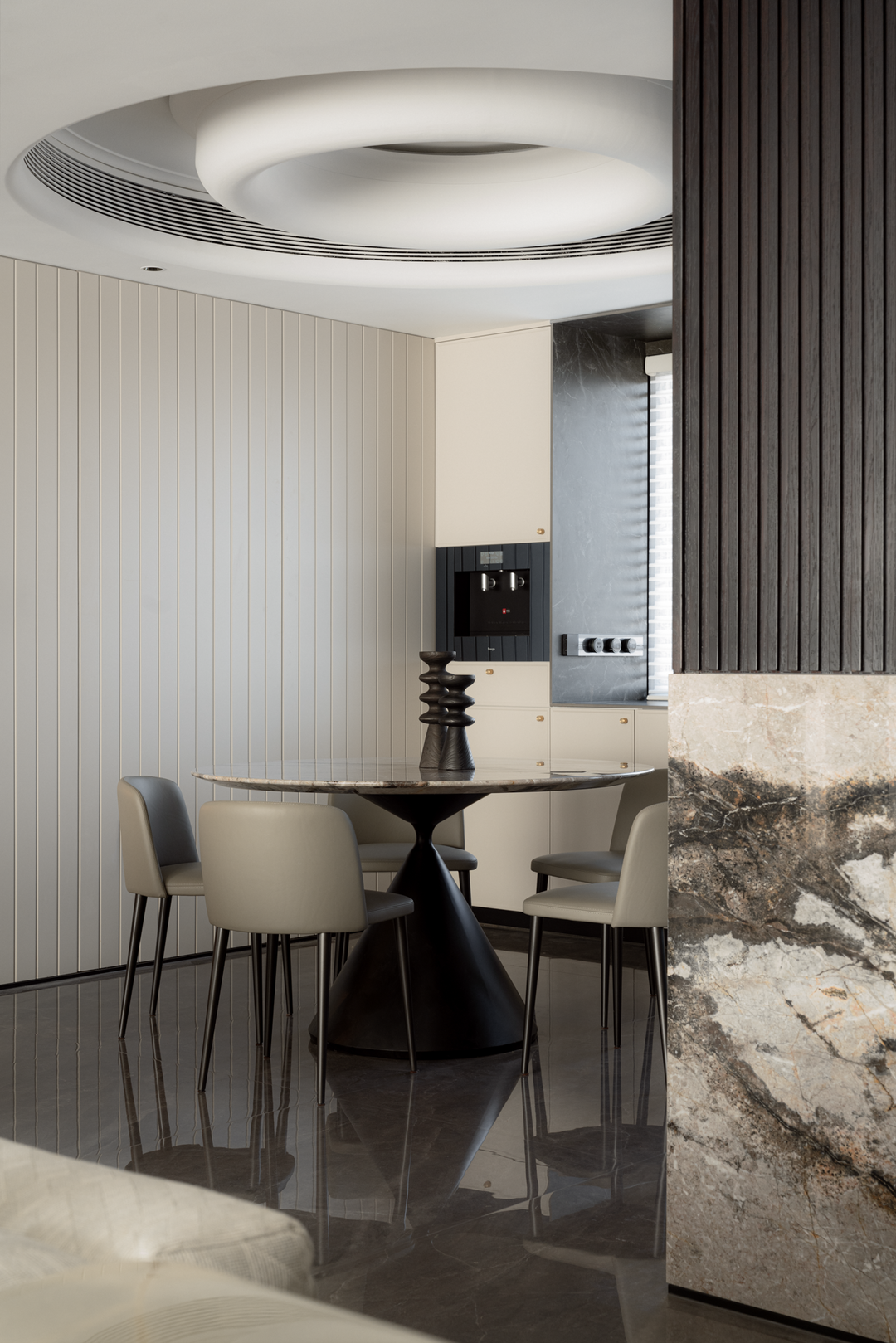 真正的品质生活在于直抵人心的身心体验,而不仅仅是外在呈现的美感。根据业主的居住需求,设计师将原北面的卧室改为更衣室,这不仅是一个简单的衣物储放空间,更是男主人所需的思考和冥想空间。