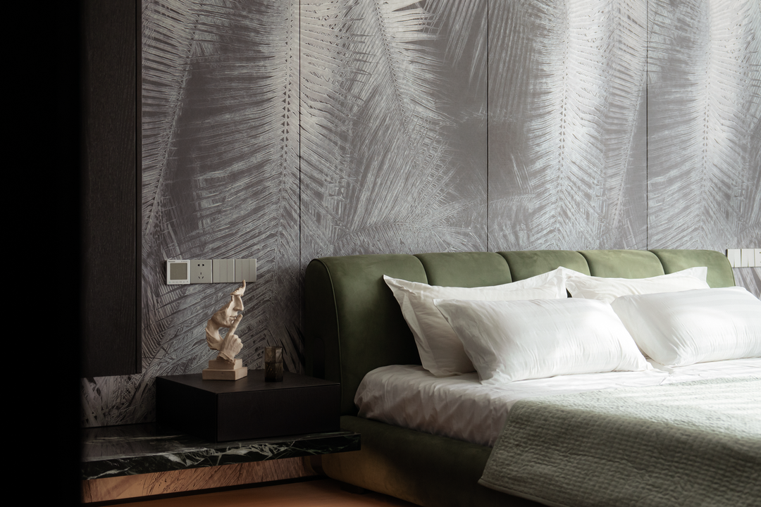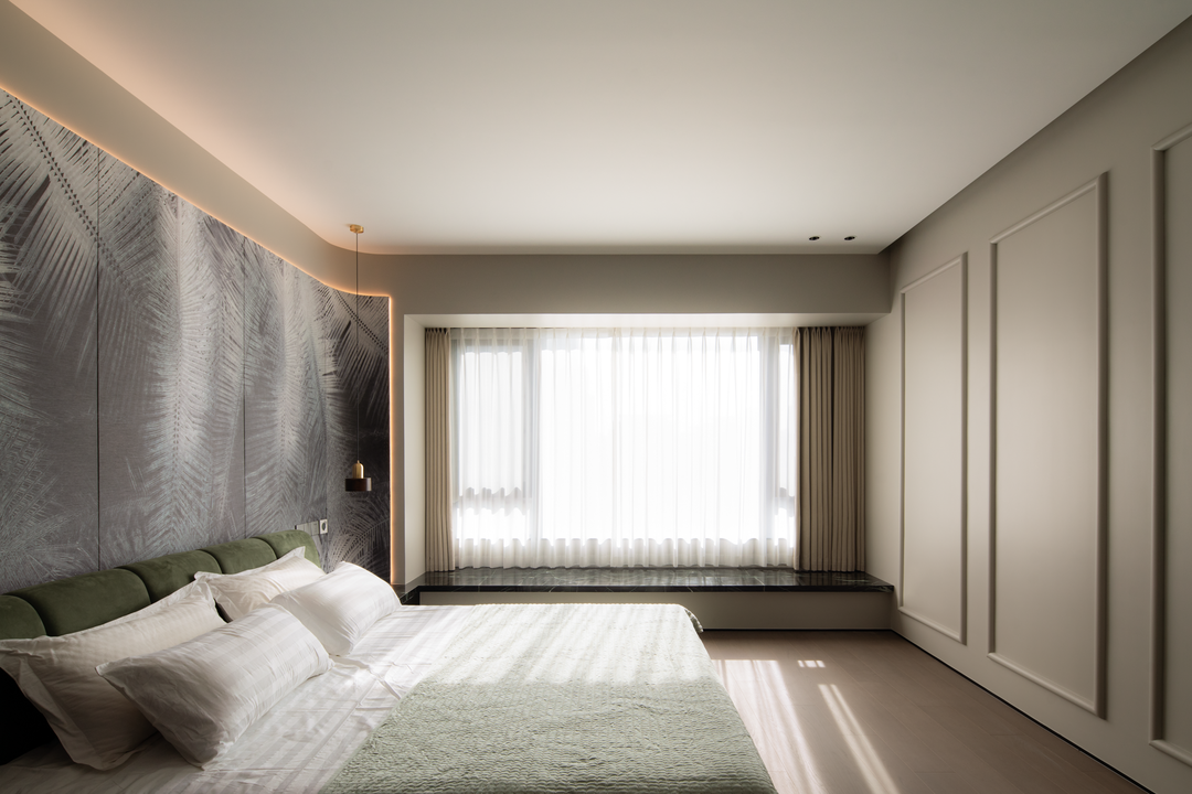 家的底色缤纷多样,有时色彩成为勾勒家的框架,有时记忆成为家的唯一背景。抛开嘈杂的外环境,卧室承载了身心休整的小憩时光,最终指向心灵的栖息,淡雅的色调将内敛的低调尽情体现。